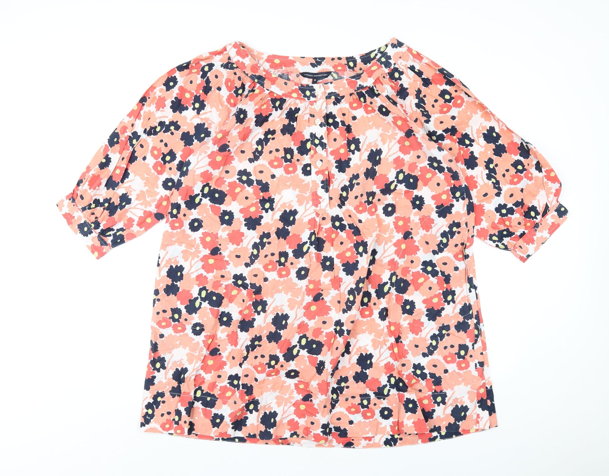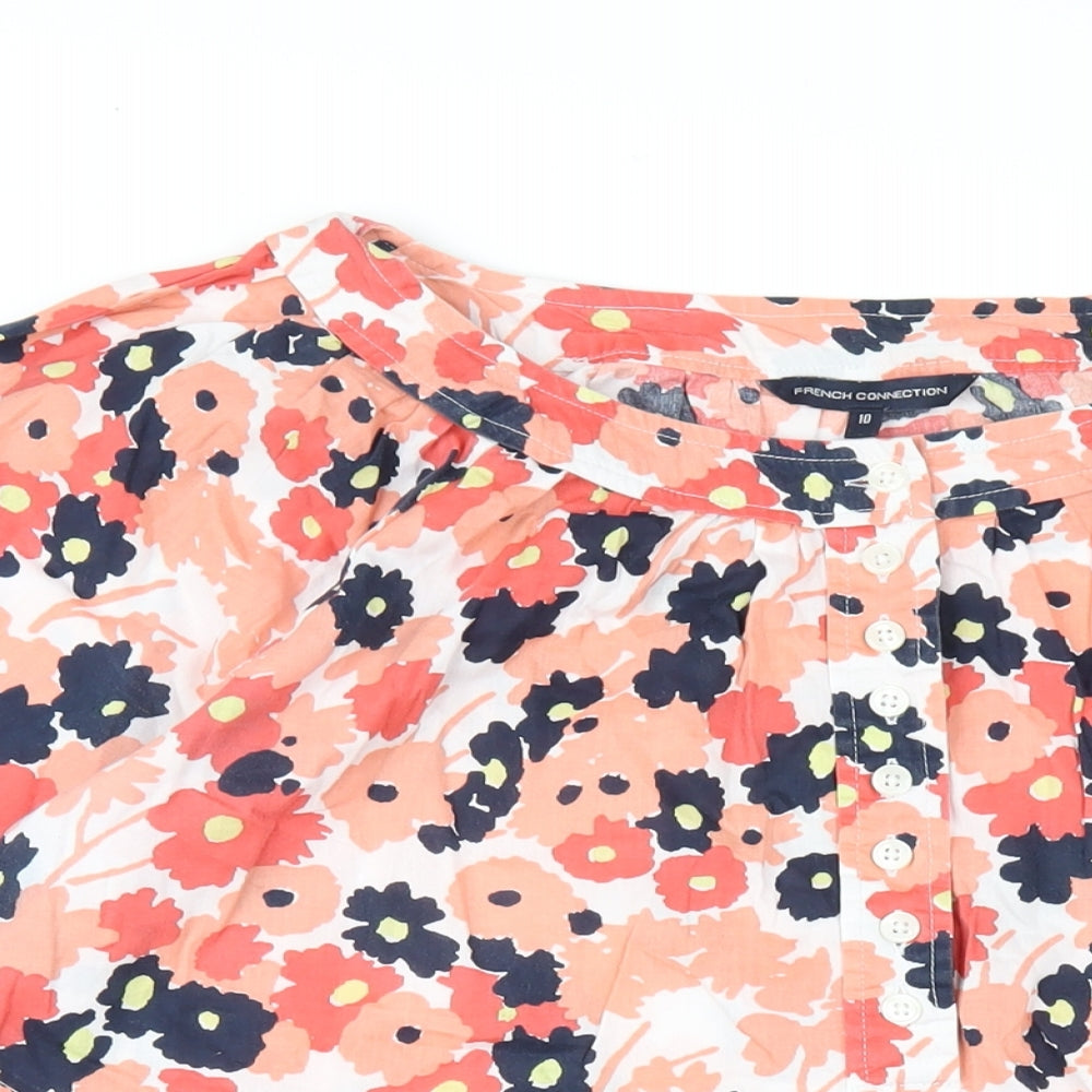 French Connection Womens Multicoloured Floral Cotton A-Line Size 10 Scoop Neck Button