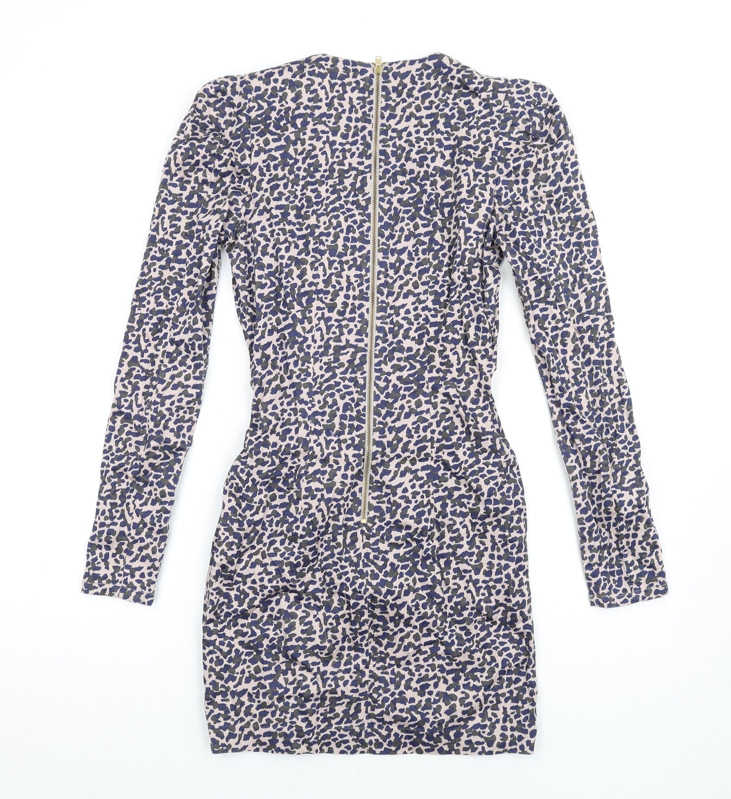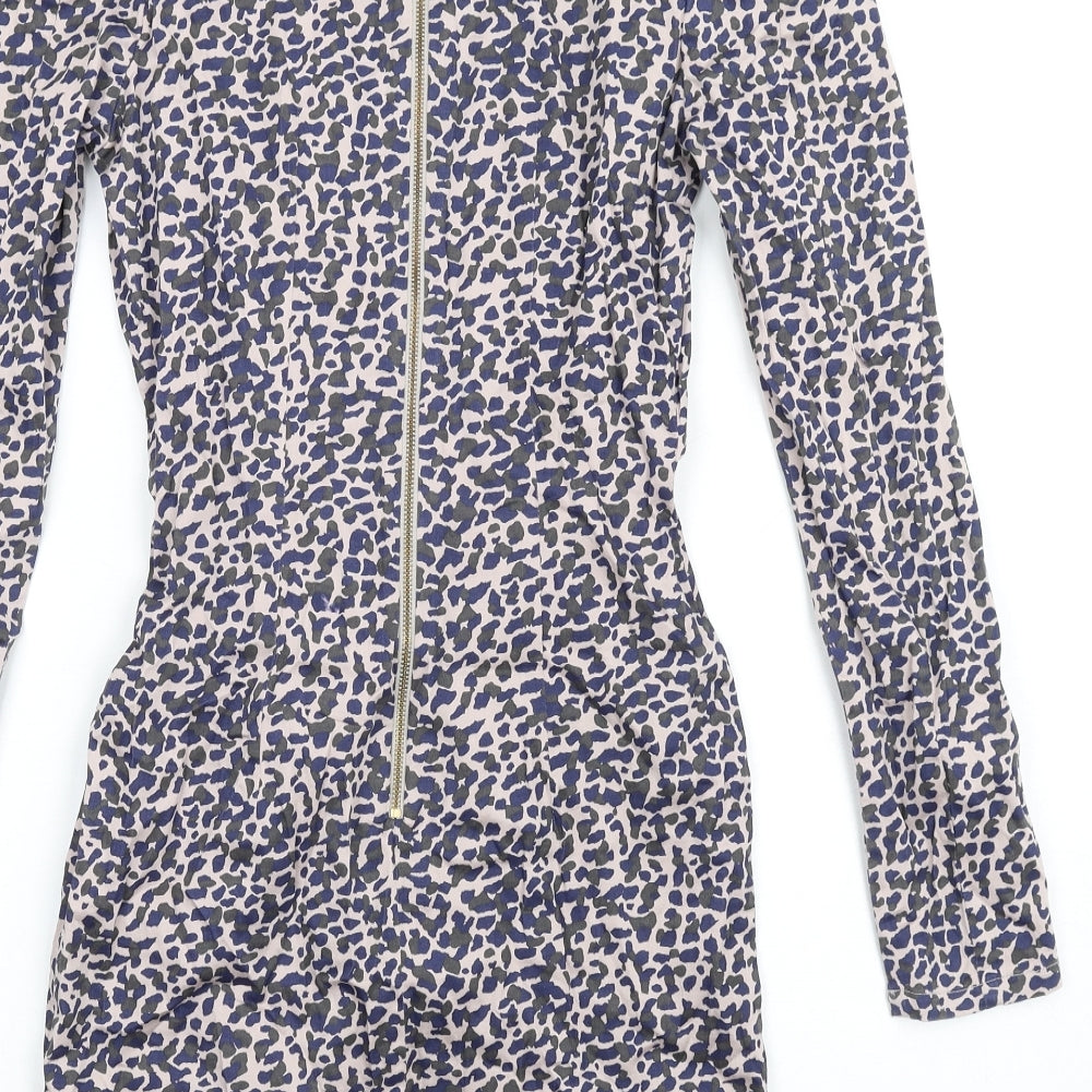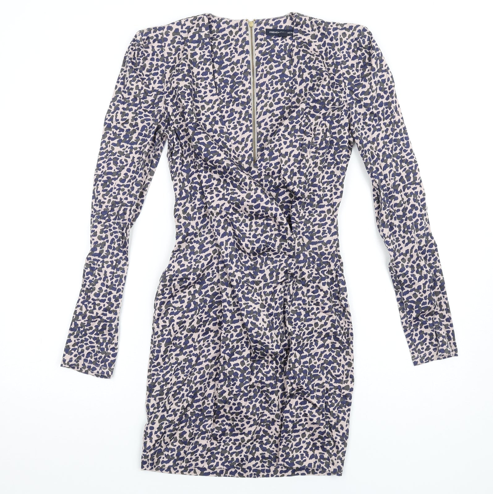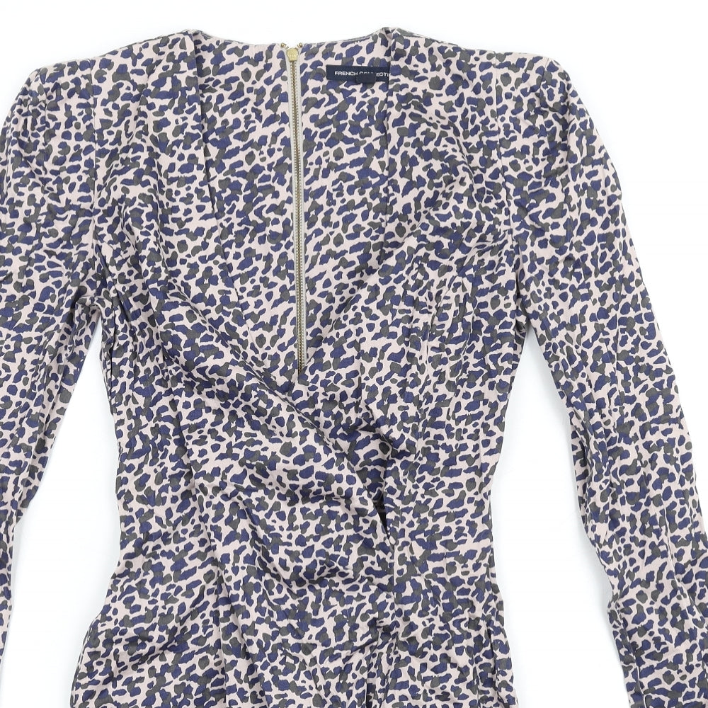 French Connection Womens Multicoloured Geometric Cotton Bodycon Size 8 V-Neck Zip