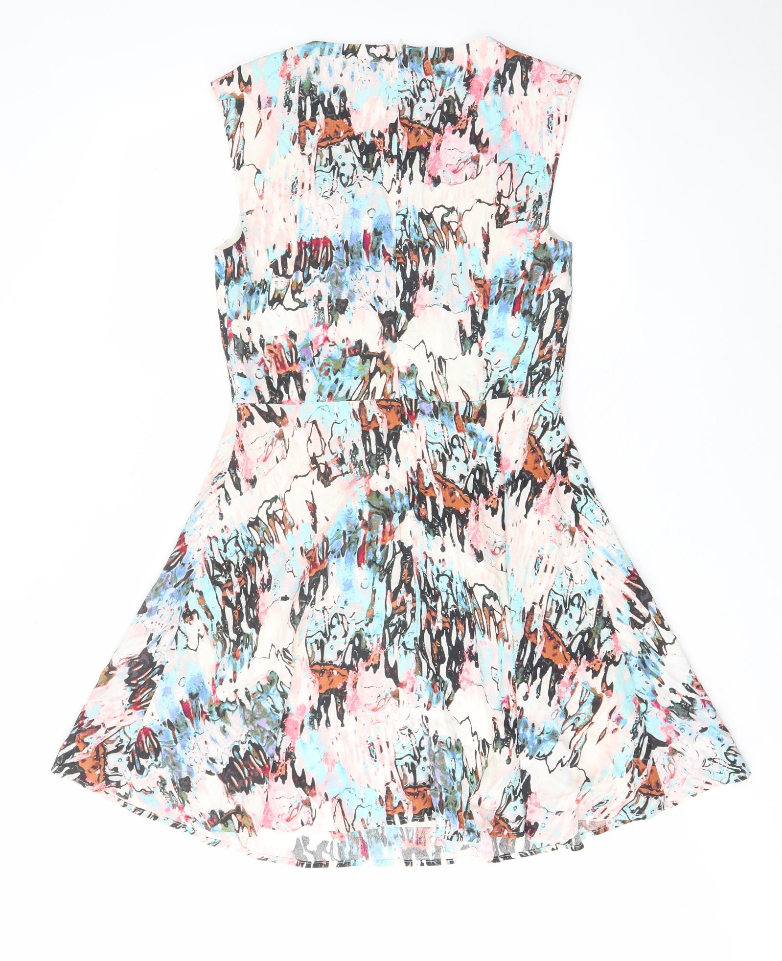 French Connection Womens Multicoloured Geometric Viscose A-Line Size 10 Boat Neck Zip - Lined