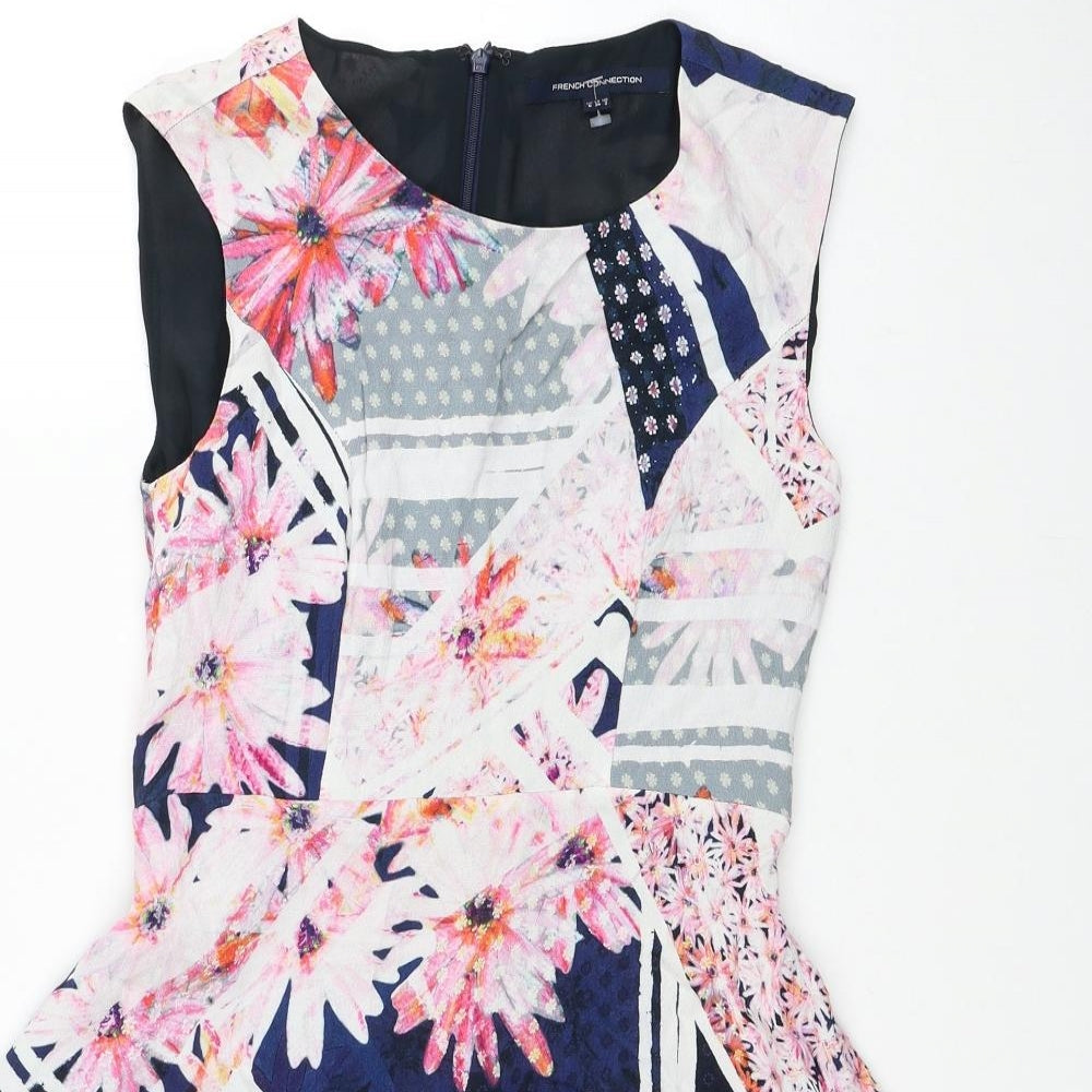French Connection Womens Multicoloured Geometric Viscose Fit & Flare Size 6 Boat Neck Zip