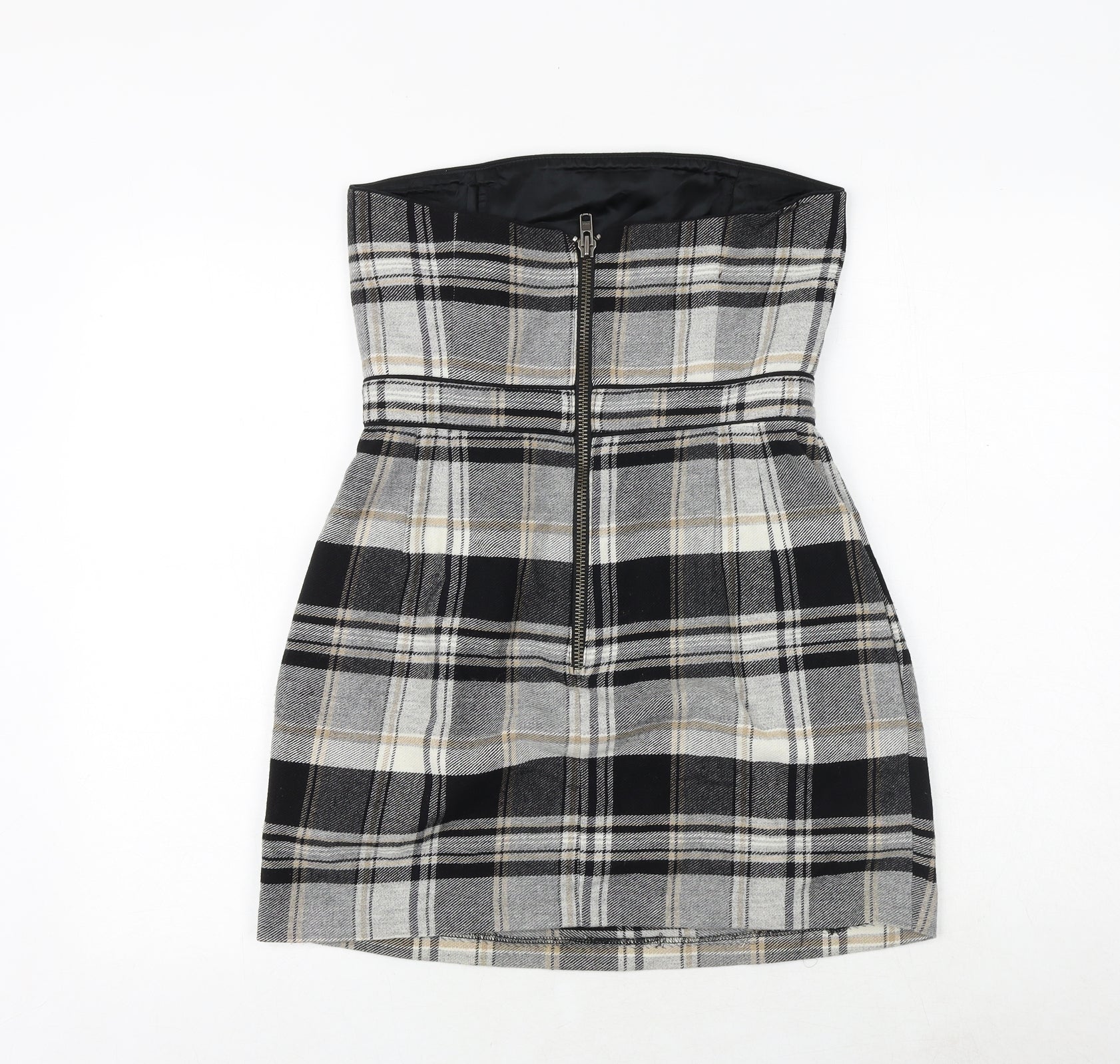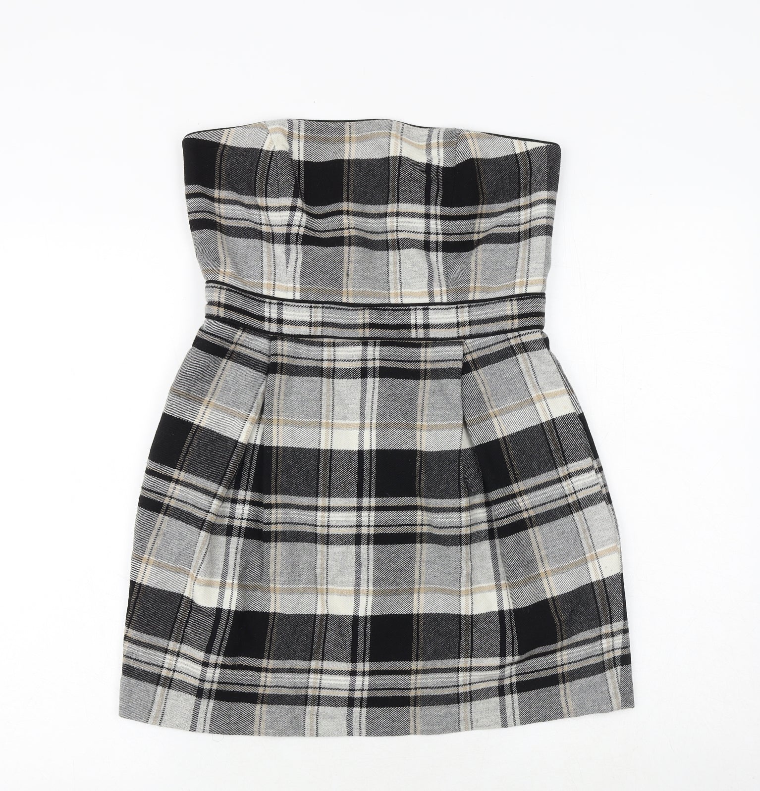 French Connection Womens Multicoloured Plaid Wool Mini Size 12 Off the Shoulder Zip