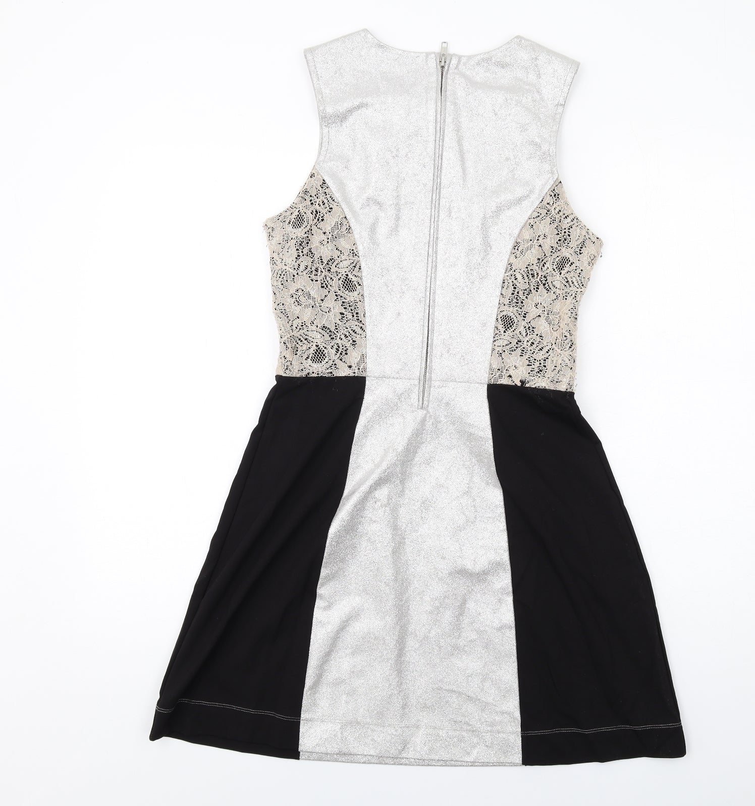 French Connection Womens Multicoloured Polyester Tank Dress Size 10 Round Neck Zip - Lace Details