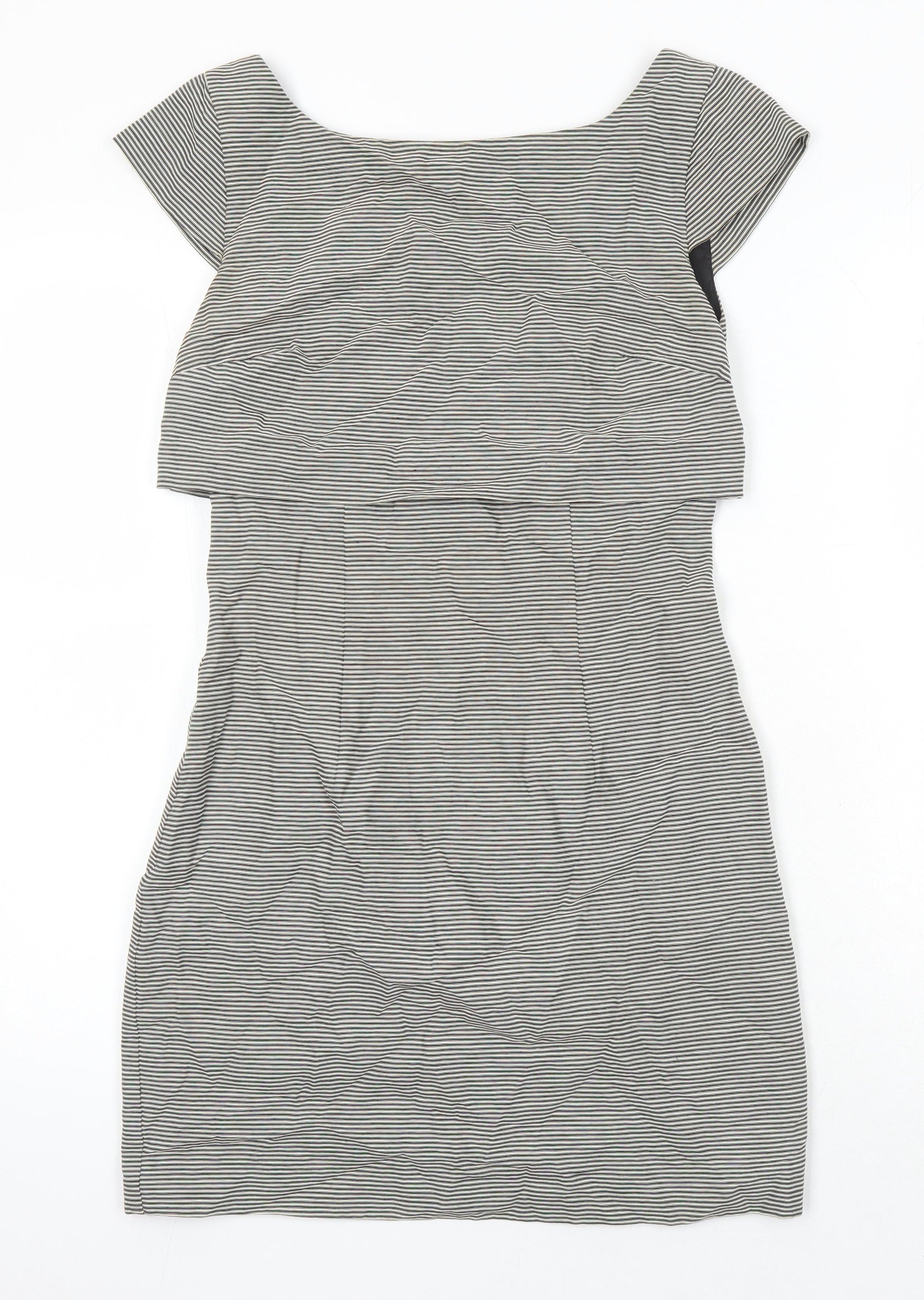 French Connection Womens Multicoloured Striped Cotton Pencil Dress Size 8 Boat Neck