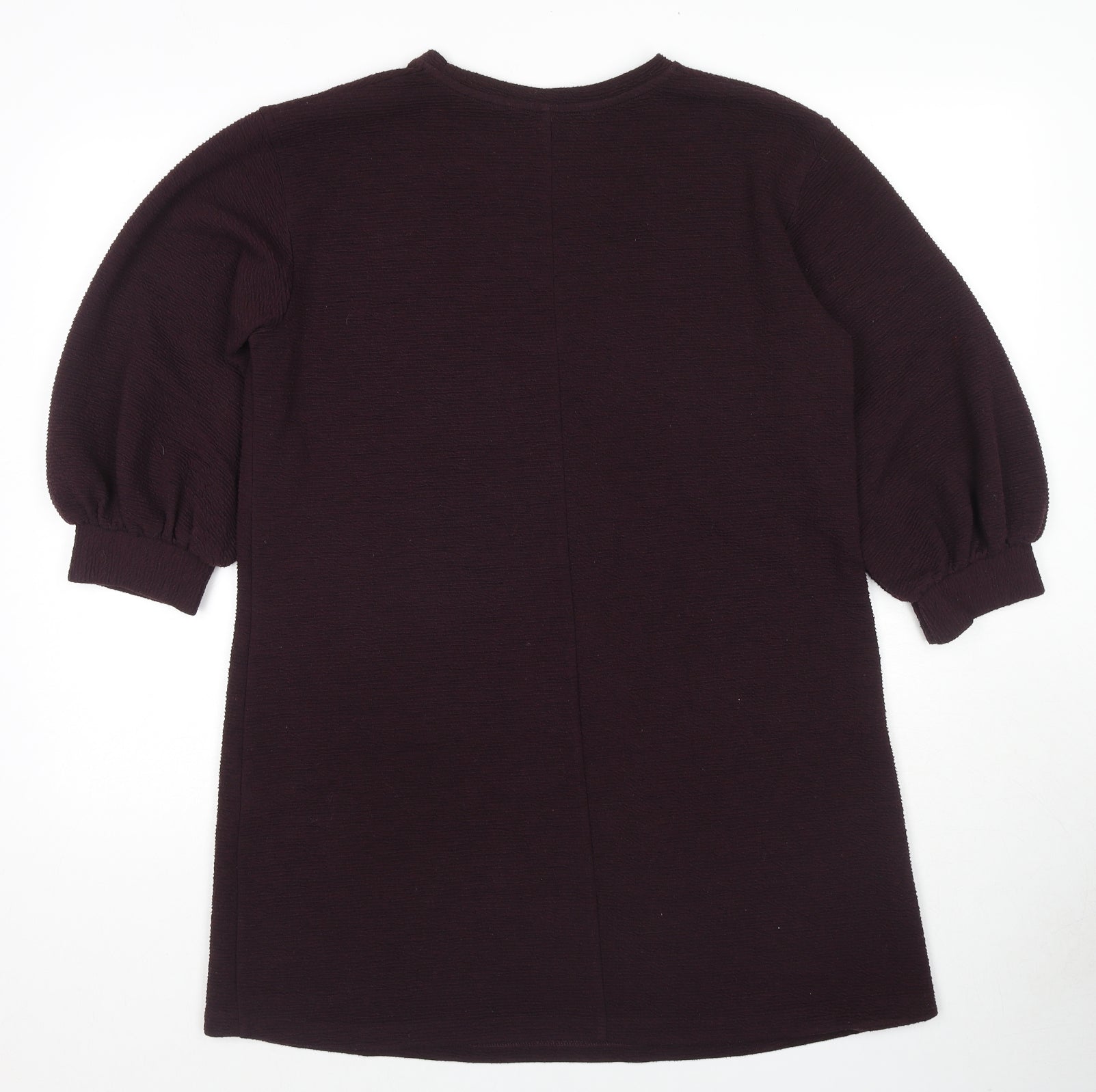 French Connection Womens Purple Polyester Jumper Dress Size 10 Round Neck Pullover