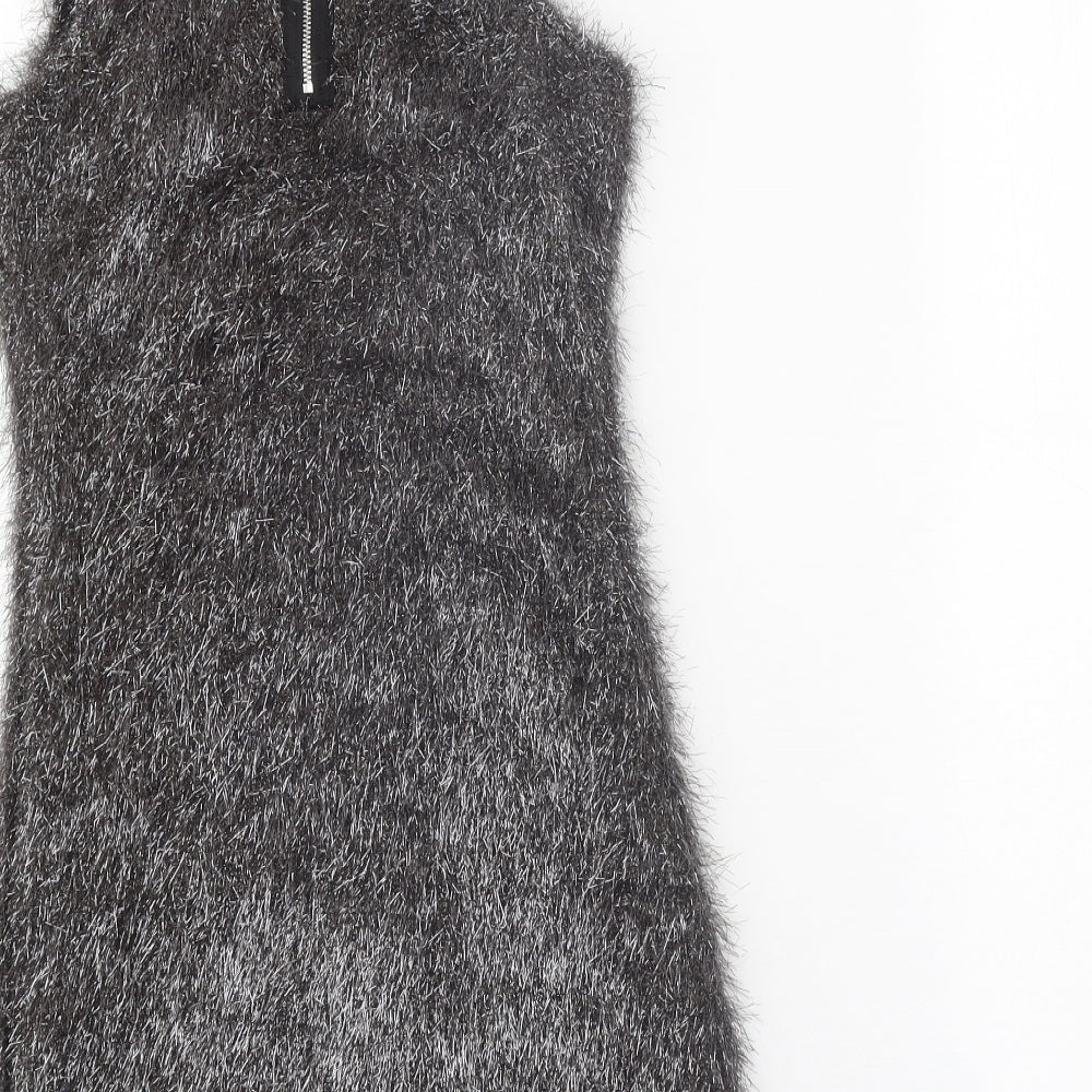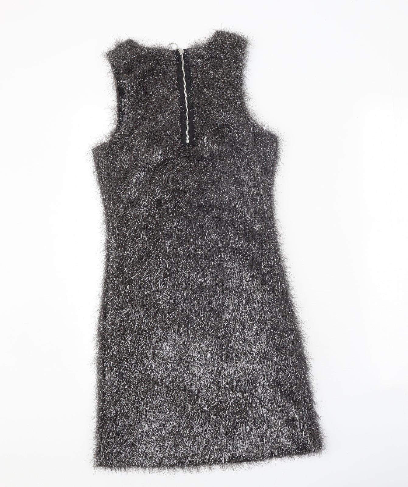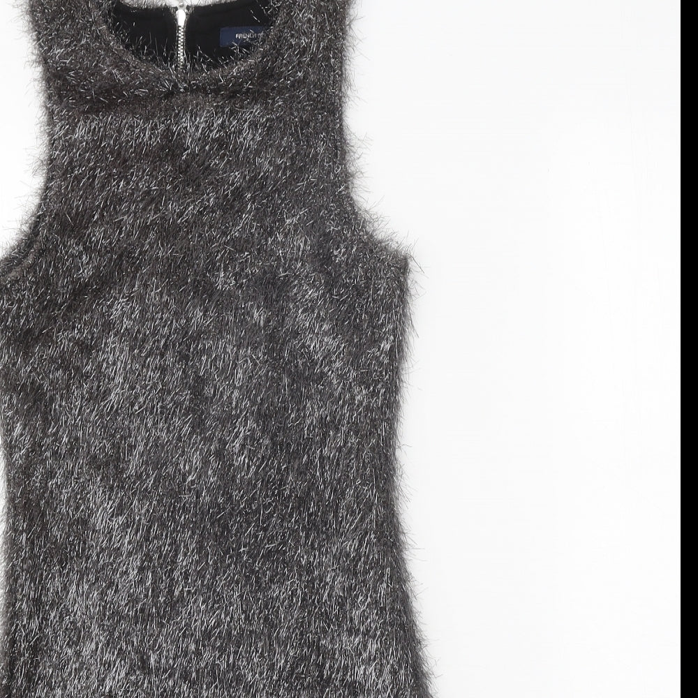 French Connection Womens Silver Polyester Shift Size 6 Boat Neck Zip