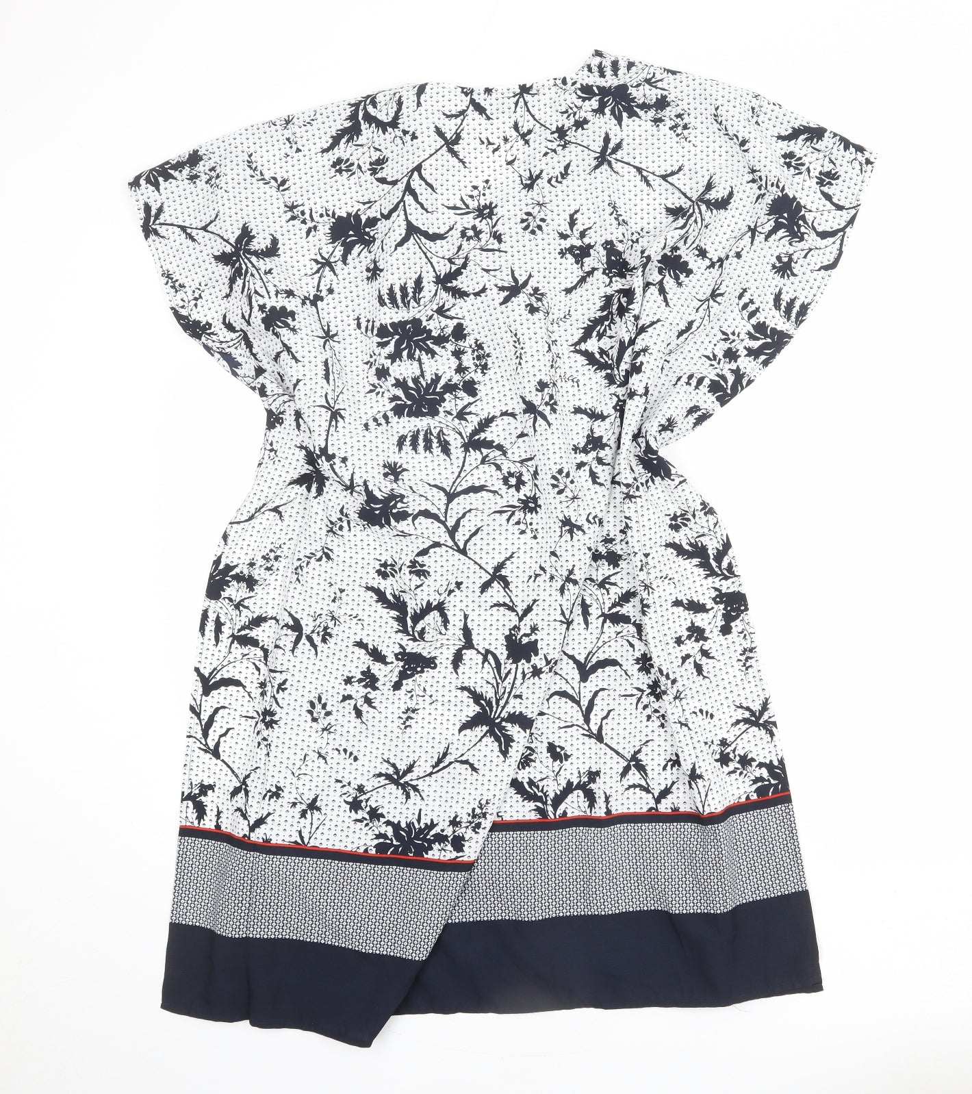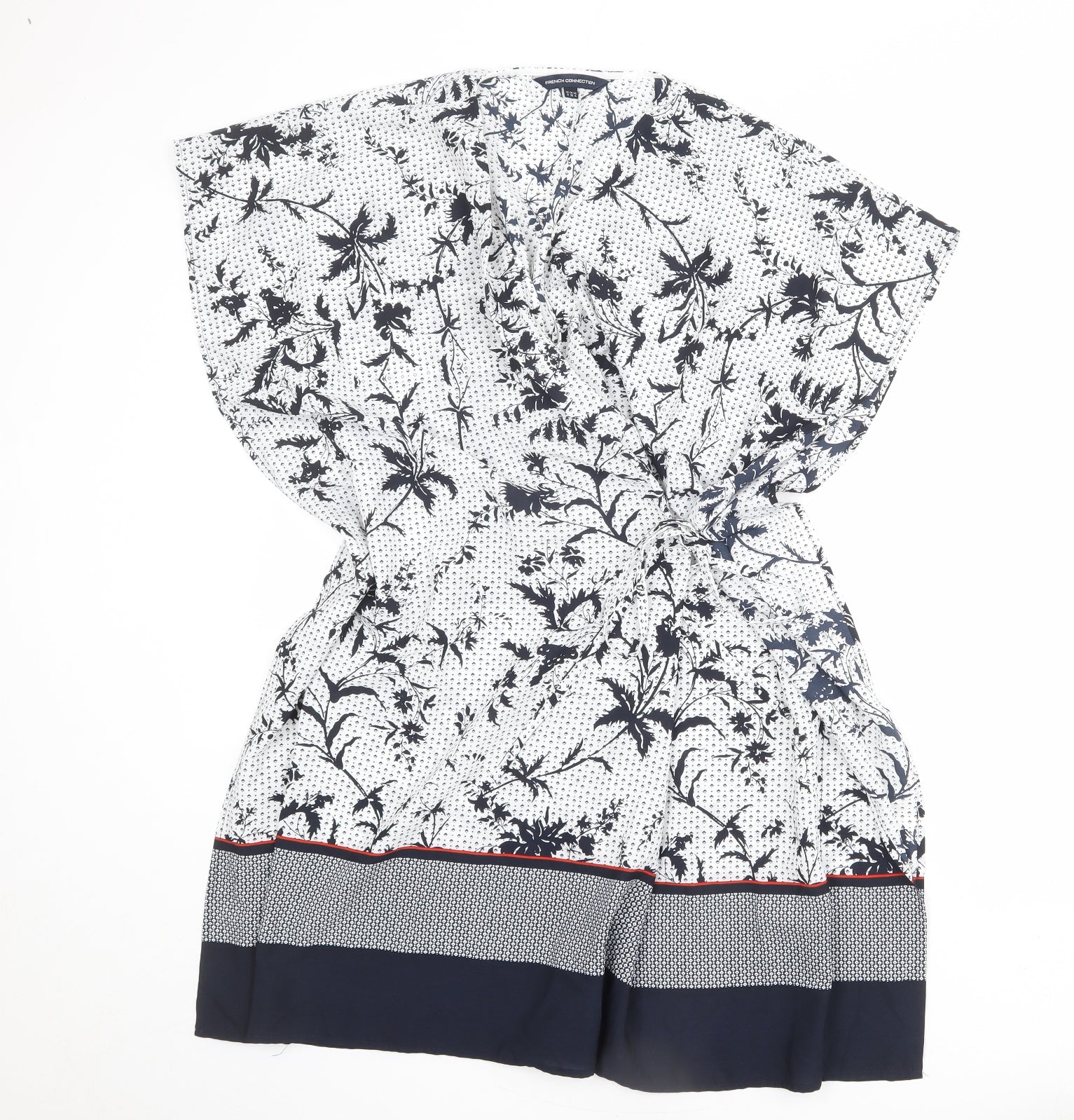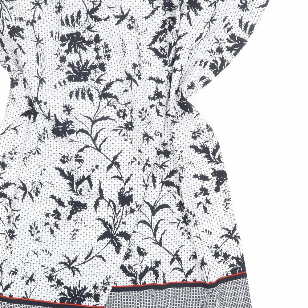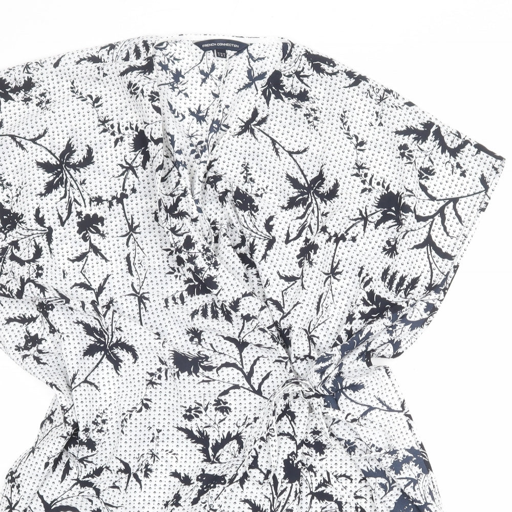 French Connection Womens White Geometric Polyester A-Line Size 8 V-Neck Tie