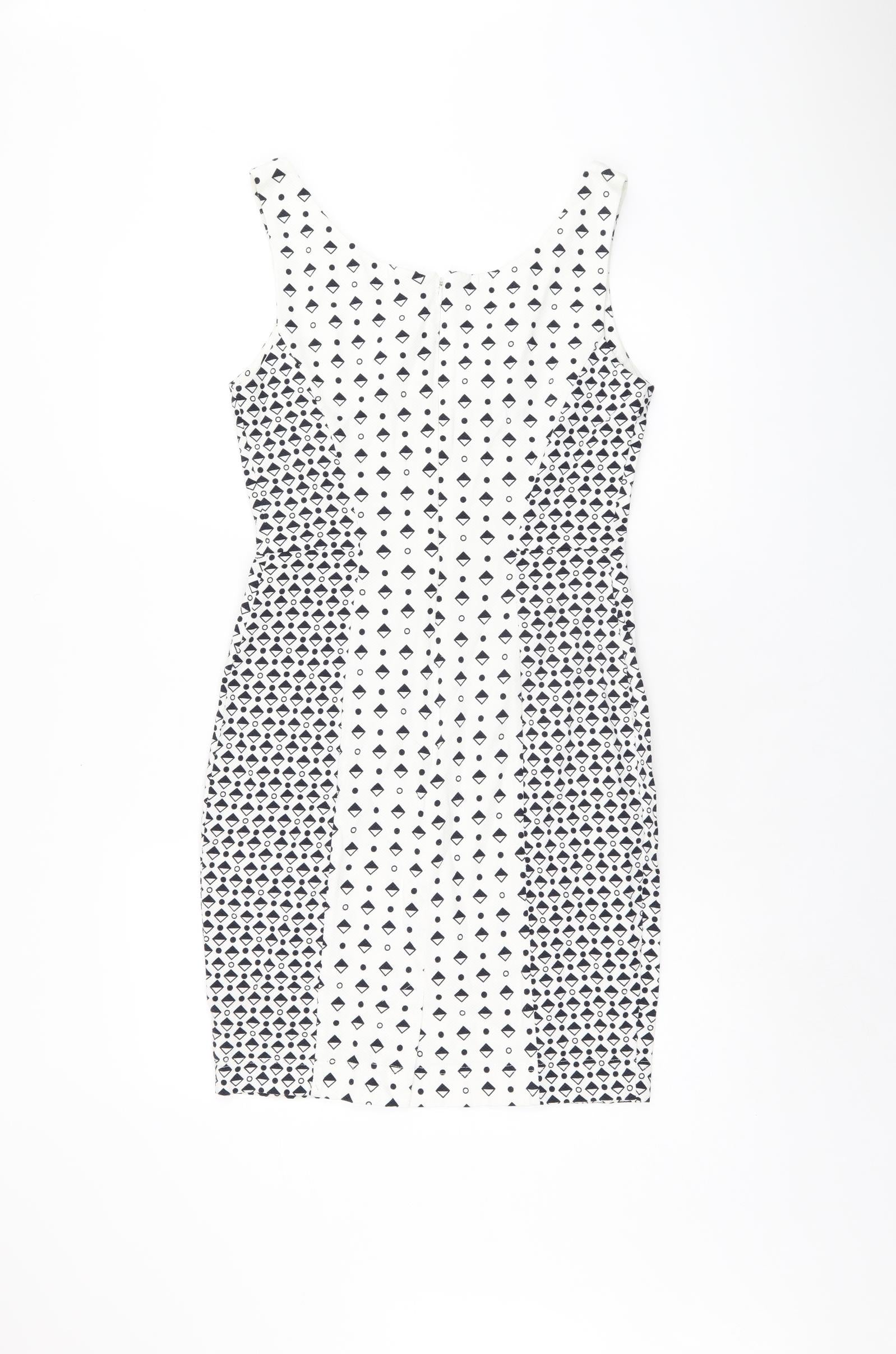French Connection Womens White Geometric Polyester Bodycon Size 12 V-Neck Zip