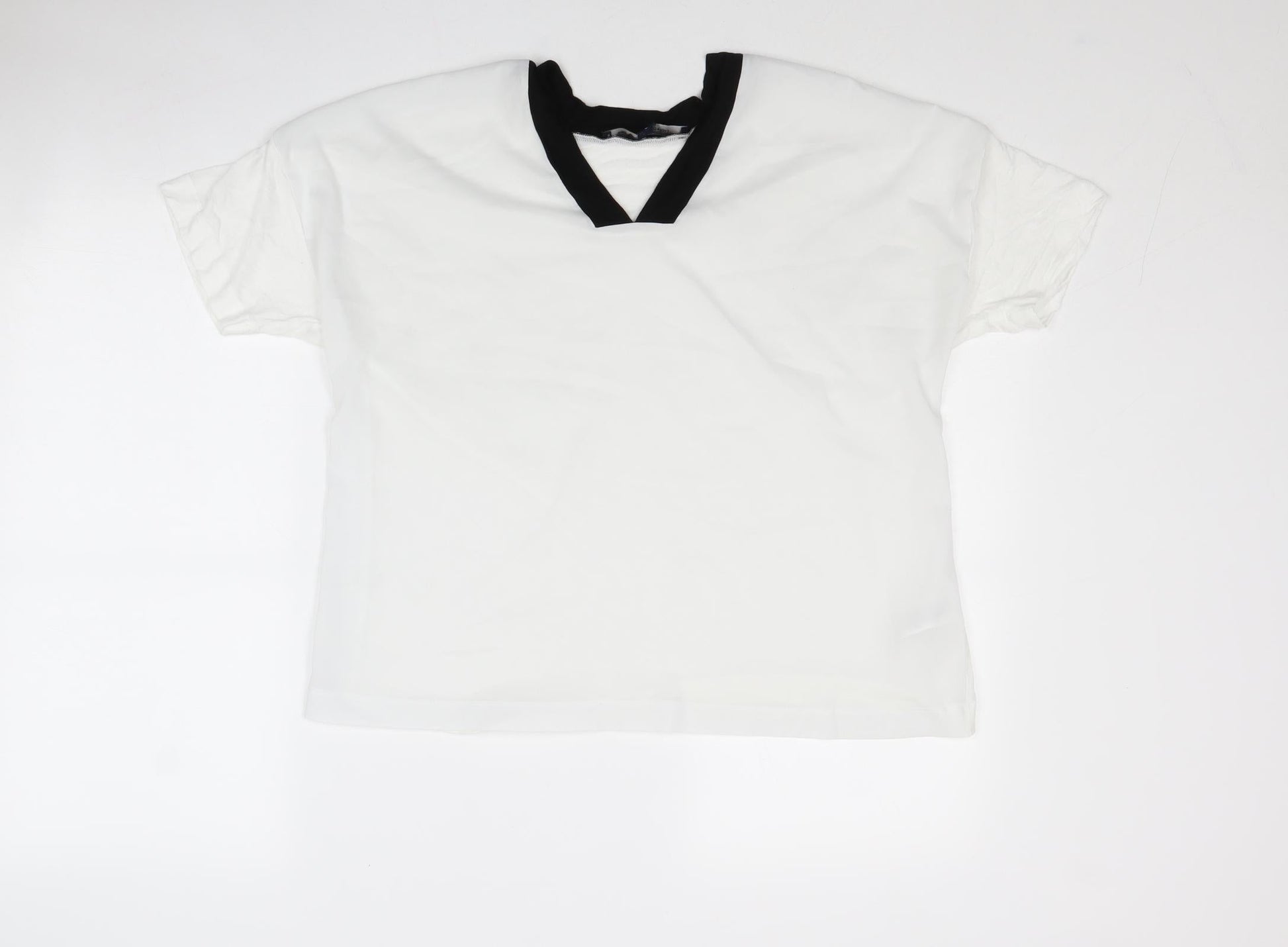 French Connection Womens White Lyocell Basic Blouse Size L V-Neck