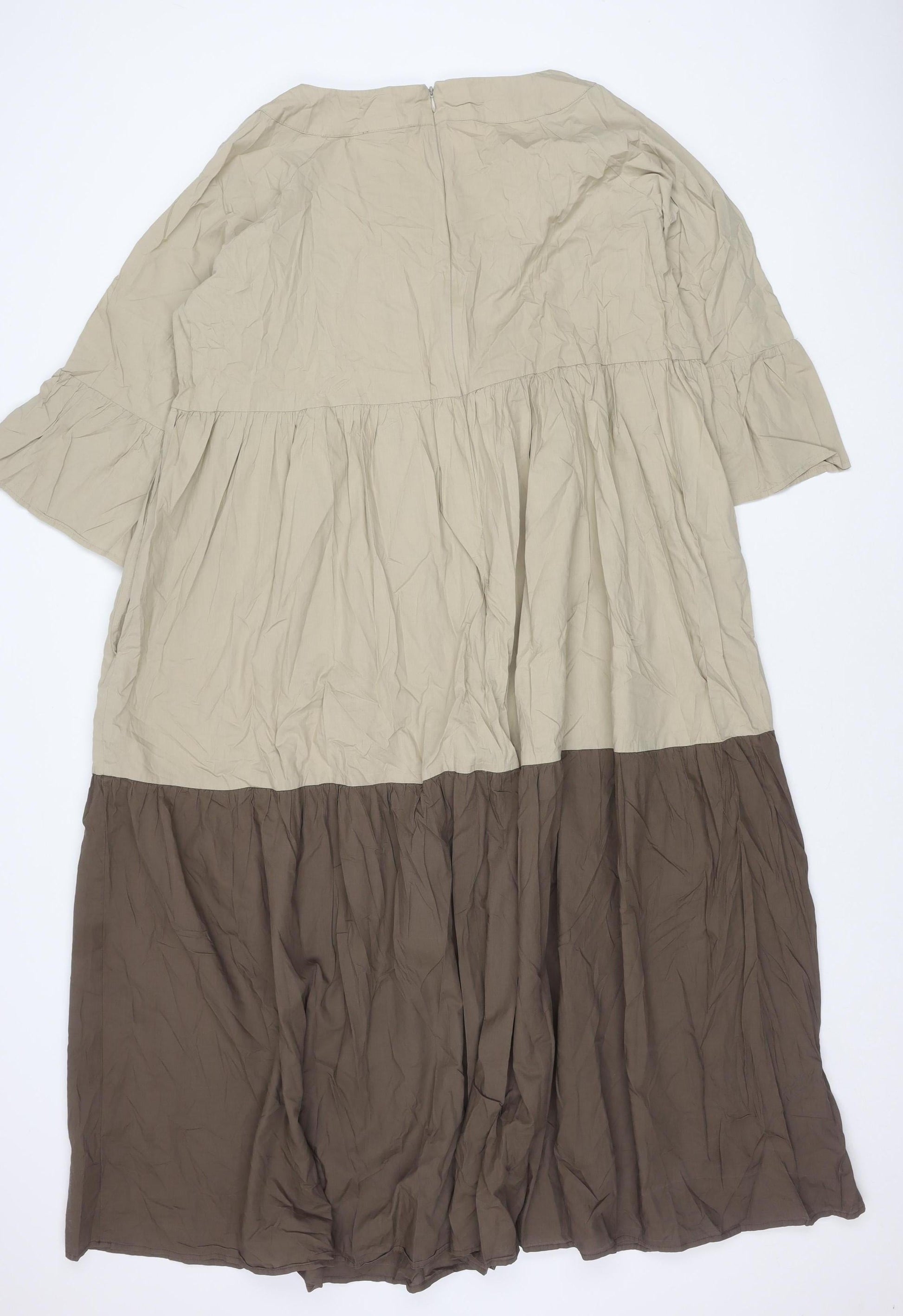 French Connection Womens XL Beige Brown Colourblock A-Line Long Dress
