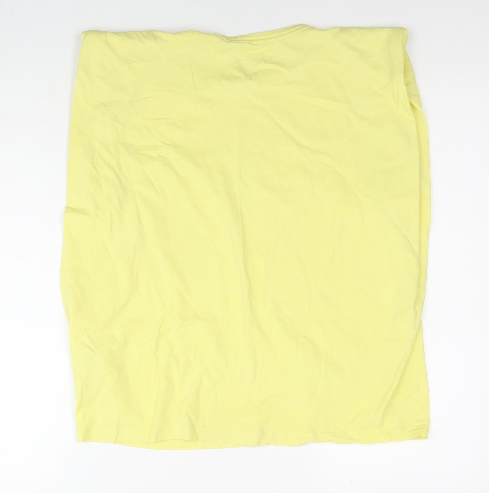 French Connection Womens Yellow Cotton Basic T-Shirt Size M Round Neck - Shoulder Pads
