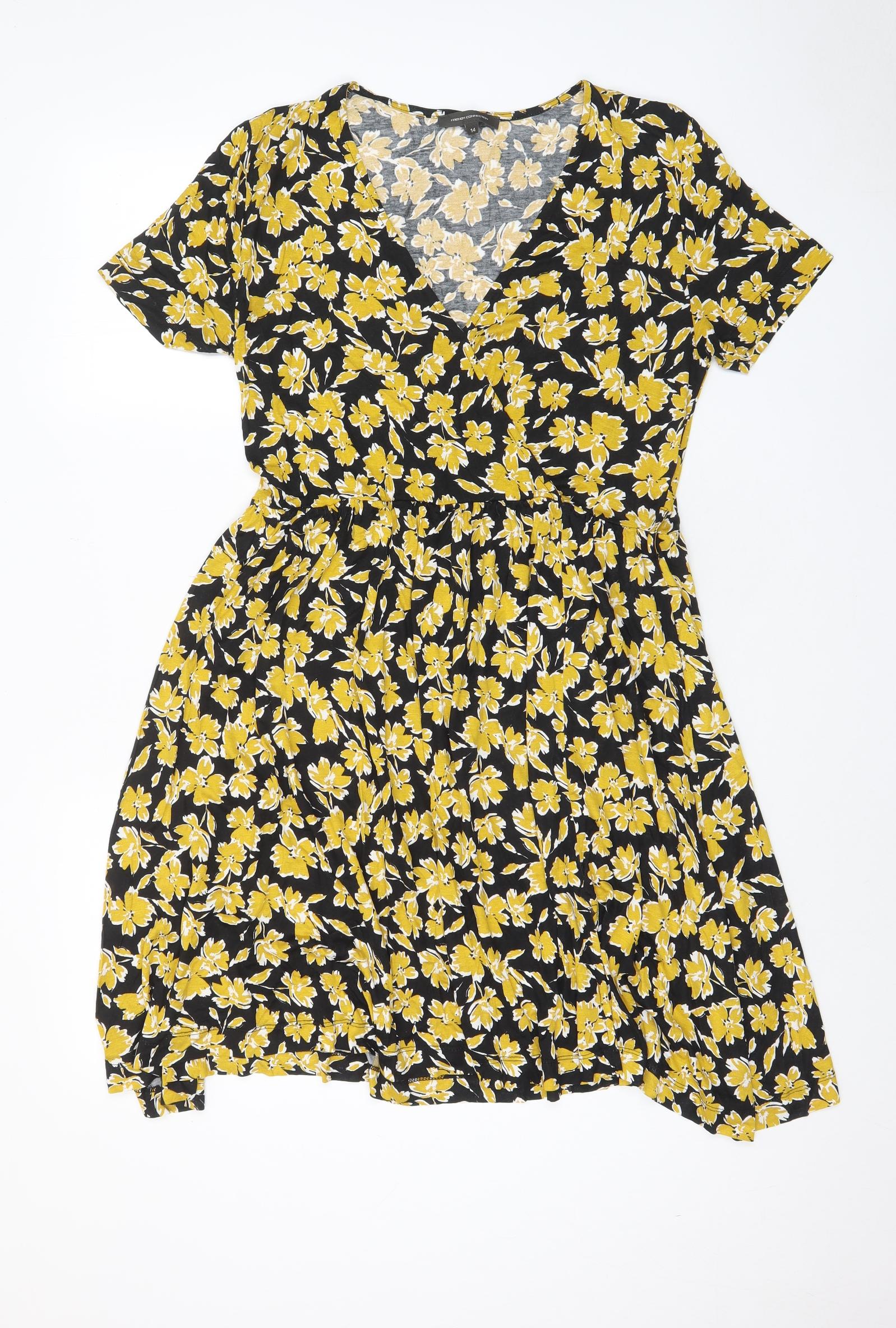 French Connection Womens Yellow Fair Isle Viscose A-Line Size M V-Neck Pullover