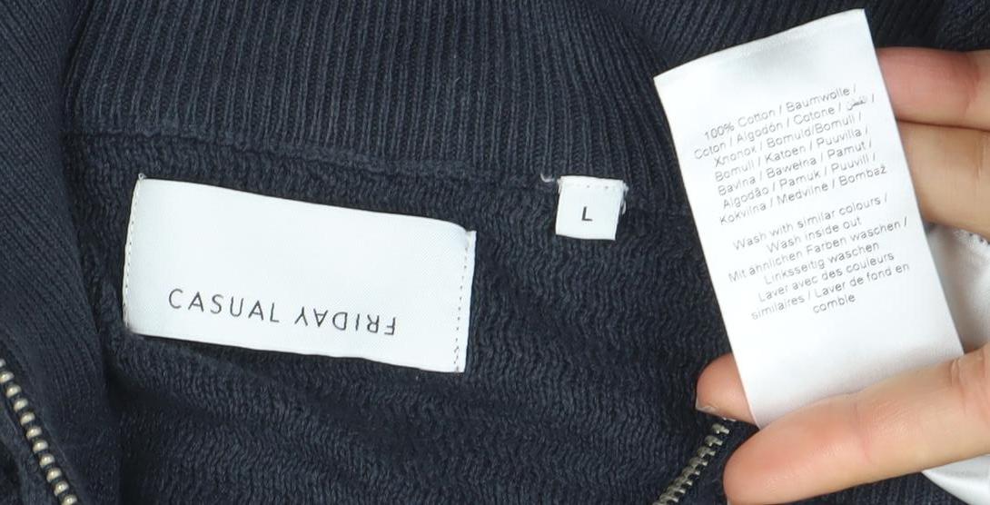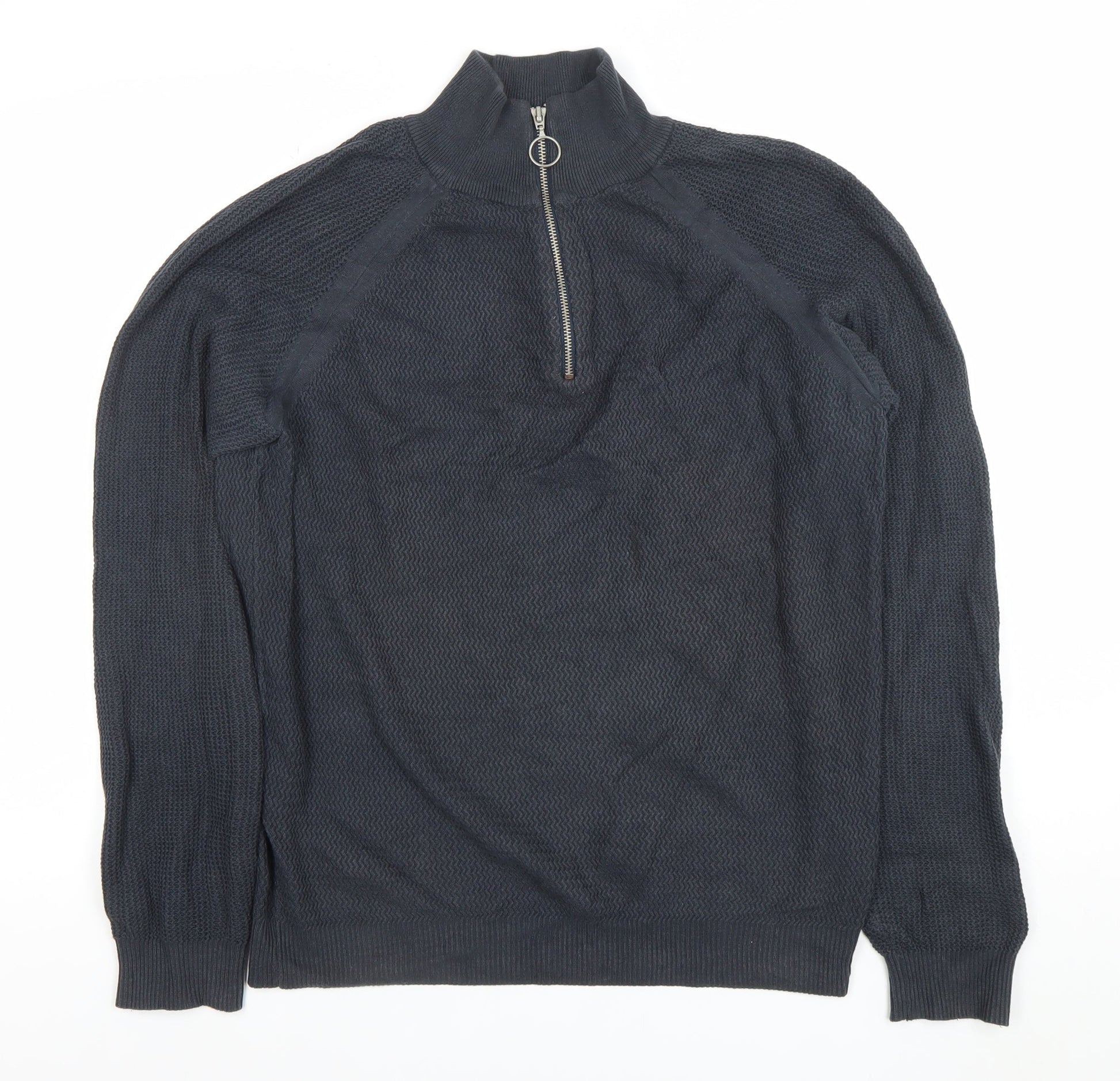 Friday Casual Men's Blue Cotton Half Zip Jumper L Waffle Knit