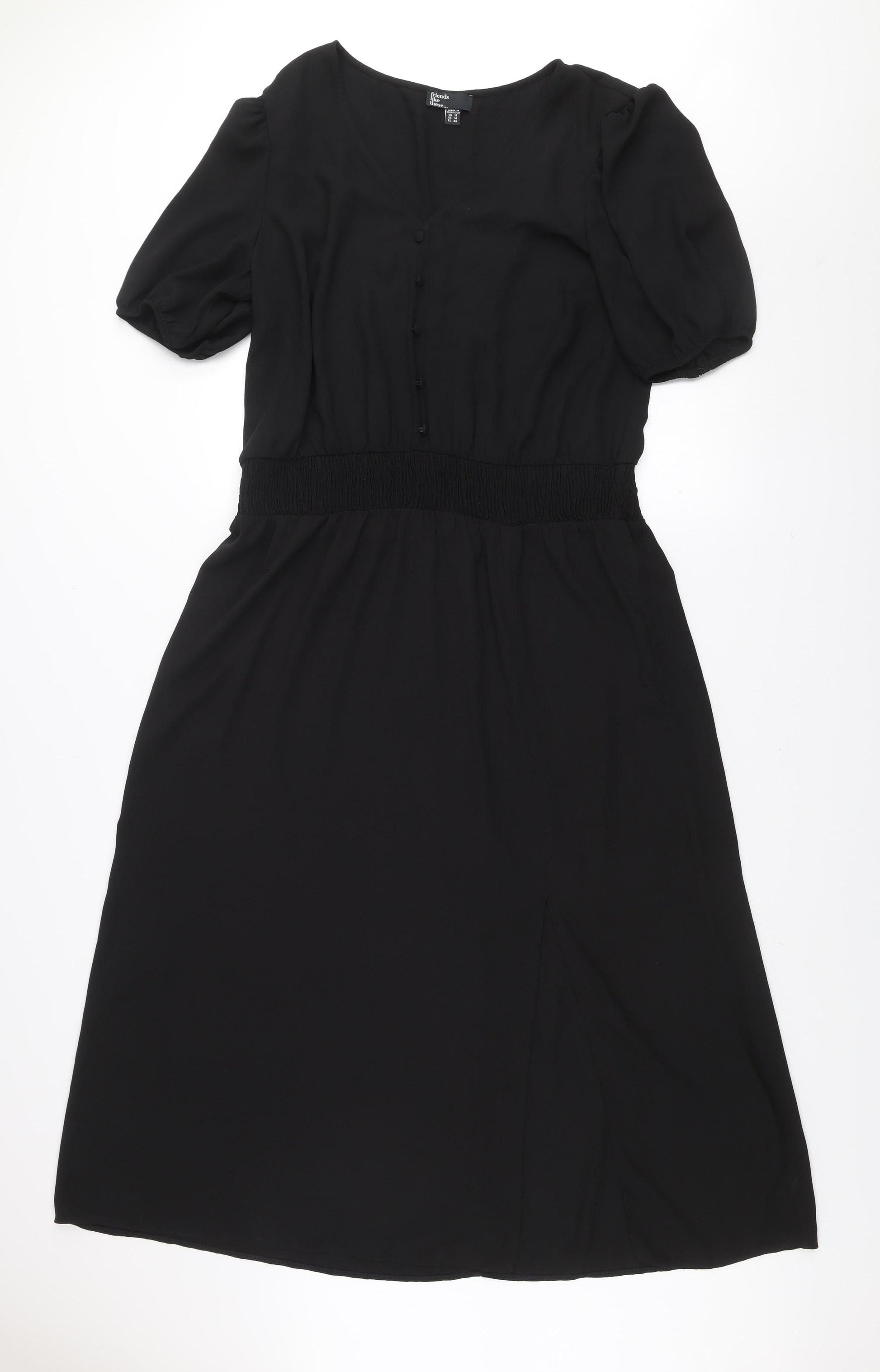 Friends Like These Women Black Size 18 A-Line V-Neck Short Sleeve Dress