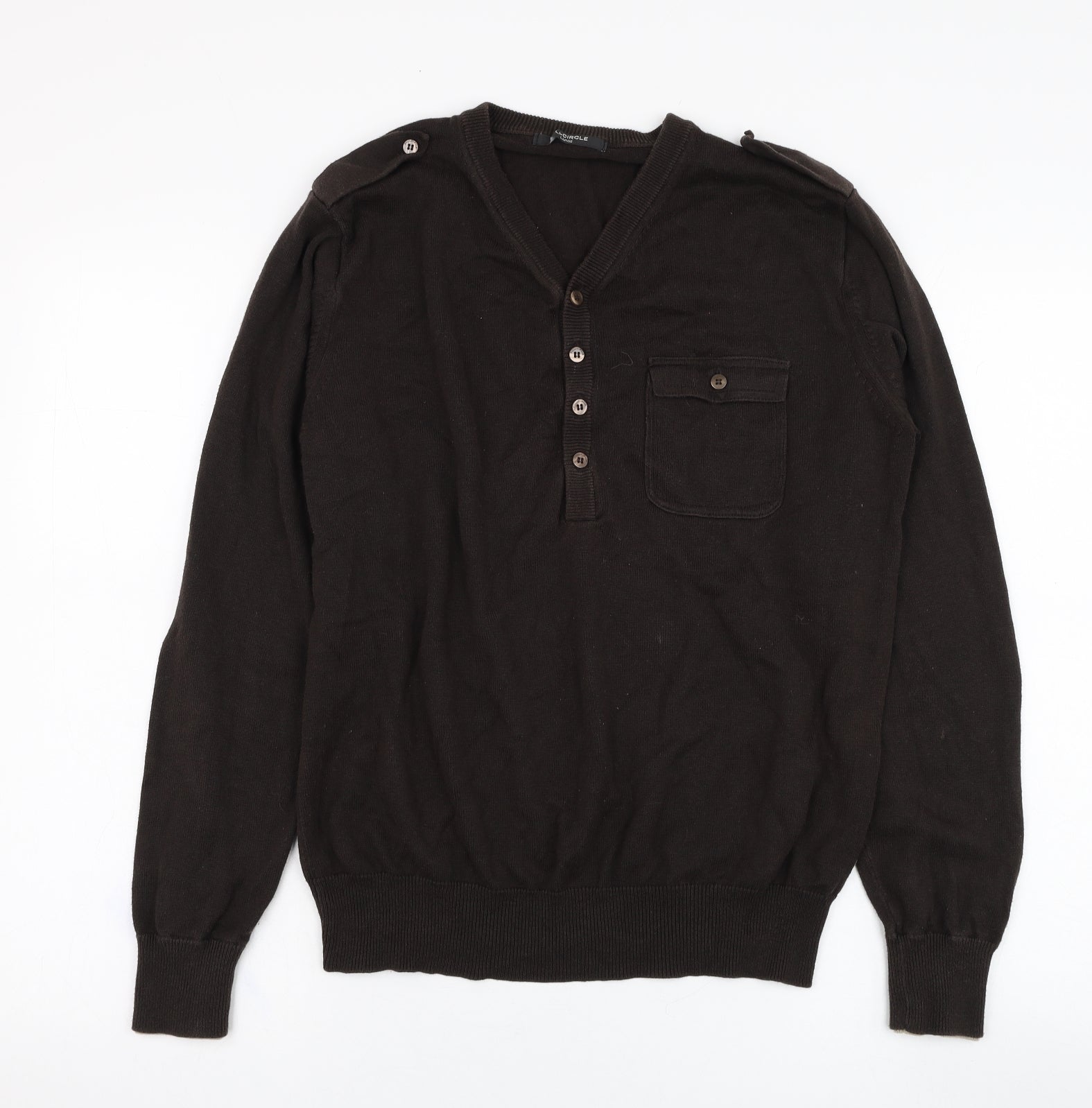 Full Circle Mens Brown V-Neck Cotton Pullover Jumper Size L