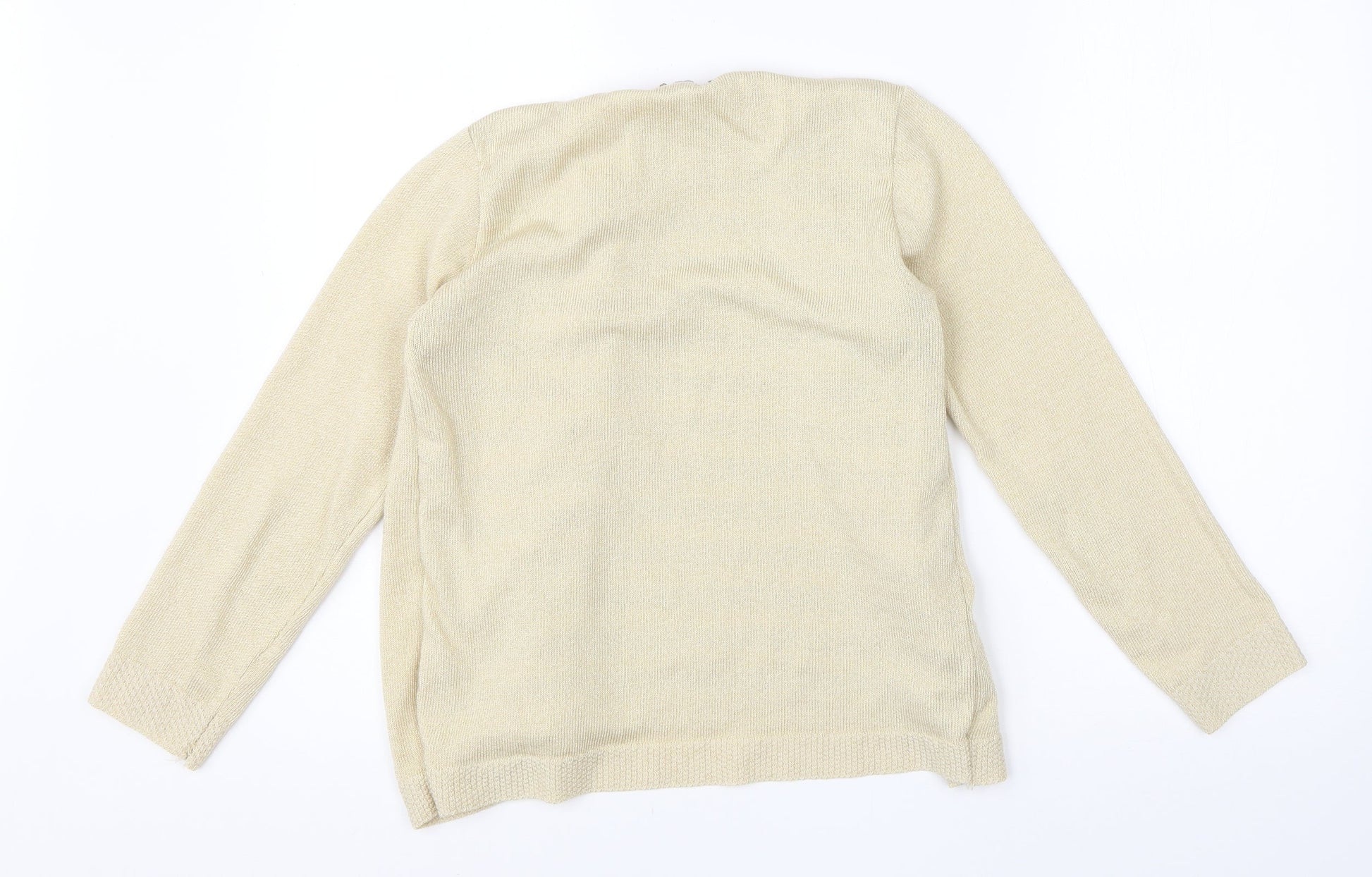 Future Lady Womens Beige Round Neck Striped Elastane Cardigan Jumper Size M