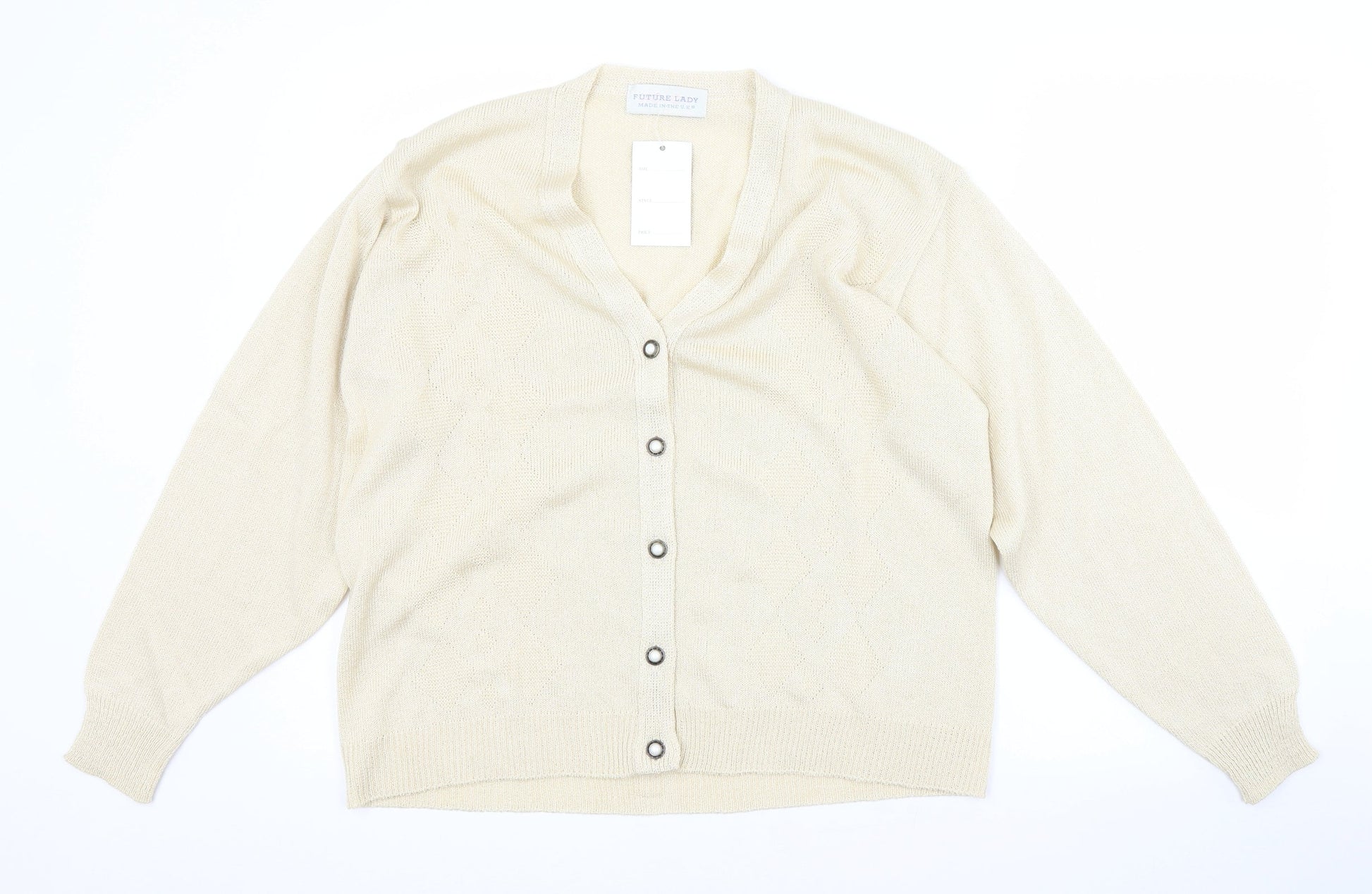 FUTURE LADY Womens Gold V-Neck Acrylic Cardigan Jumper Size 10
