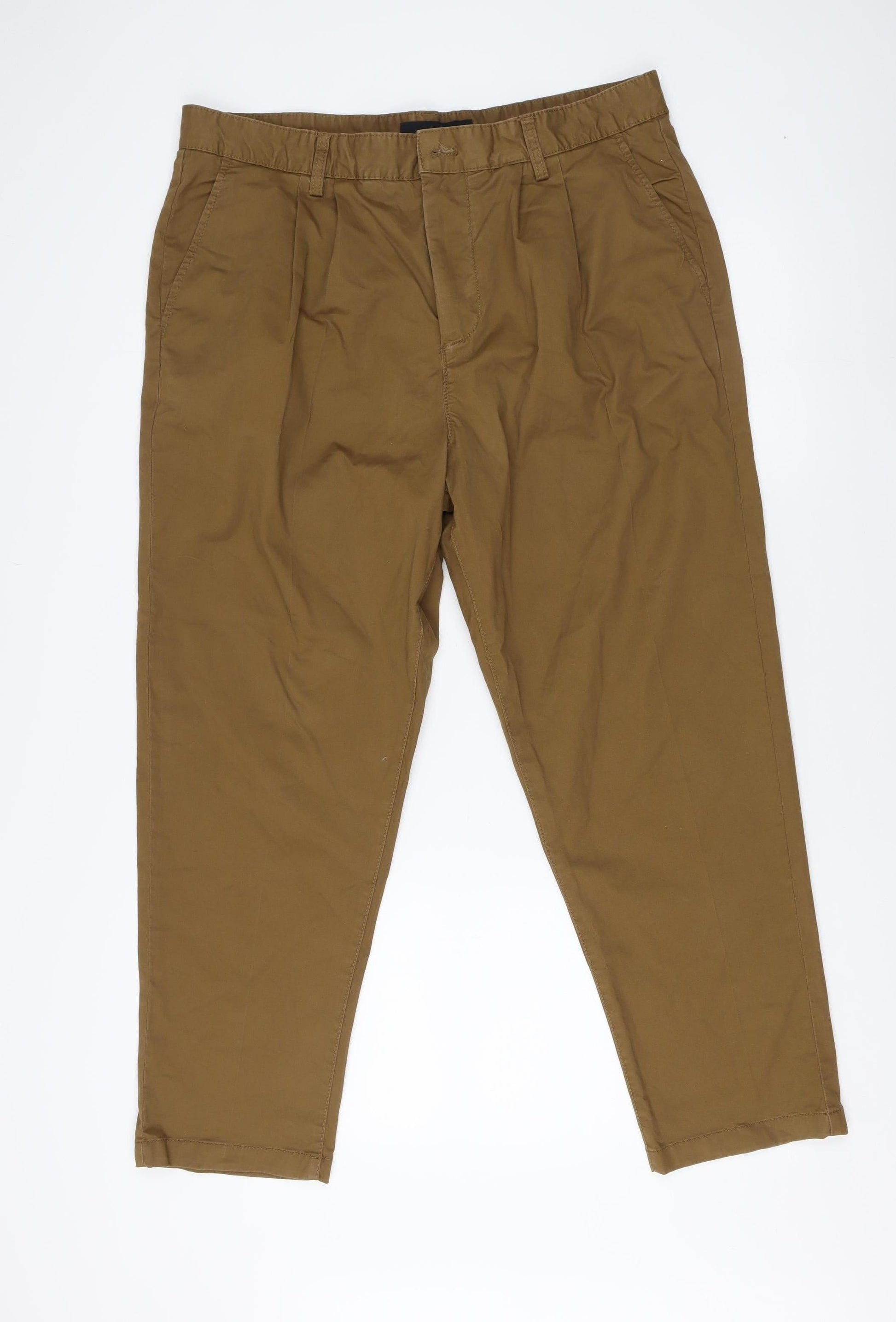 FW Bridge Men's Brown Pleated Tapered Trousers 36