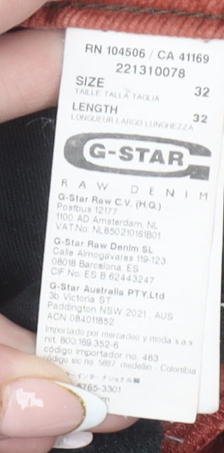 G-Star RAW 3301 Men’s Brown Corduroy Slim Trousers Size 32W 32L