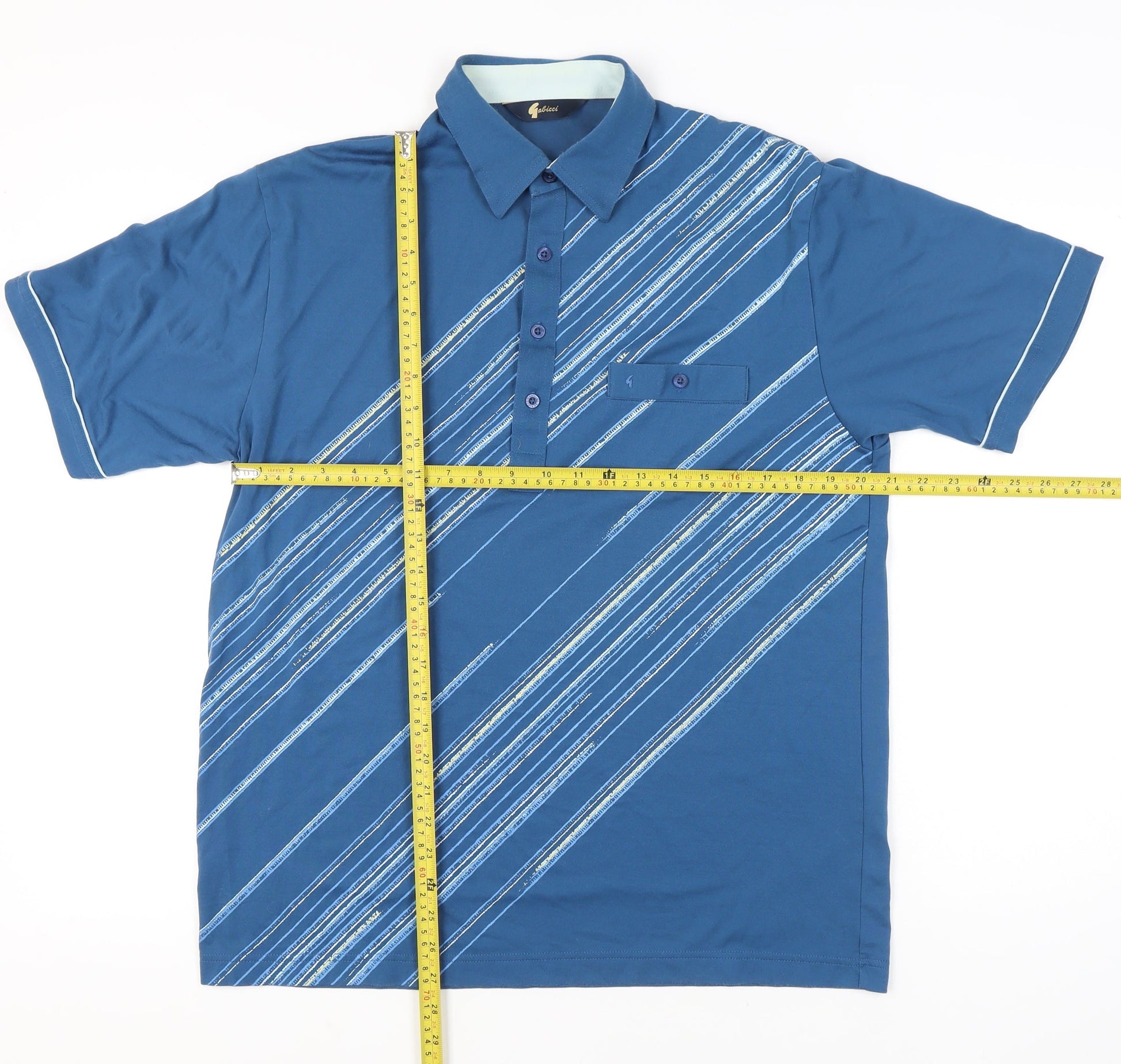 Gabicci Men’s Blue Striped Polo Shirt Size L Cotton Blend