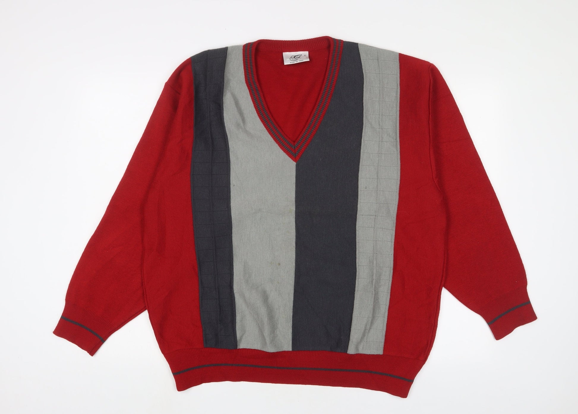 Gabicci Mens Red V-Neck Wool Pullover Jumper Size XL Long Sleeve