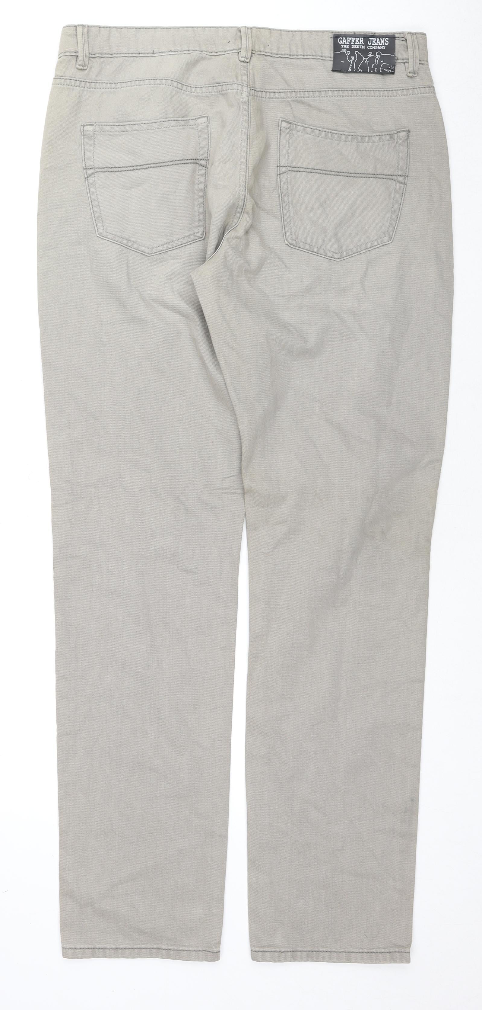 Gaffer Jeans Mens Beige Cotton Straight Jeans Size 34 in L34 in Regular Zip