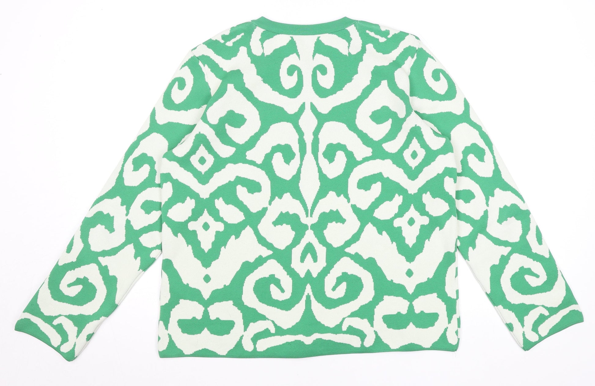 Gallery Women Green White Cardigan Medium Polyester Patterned Knit