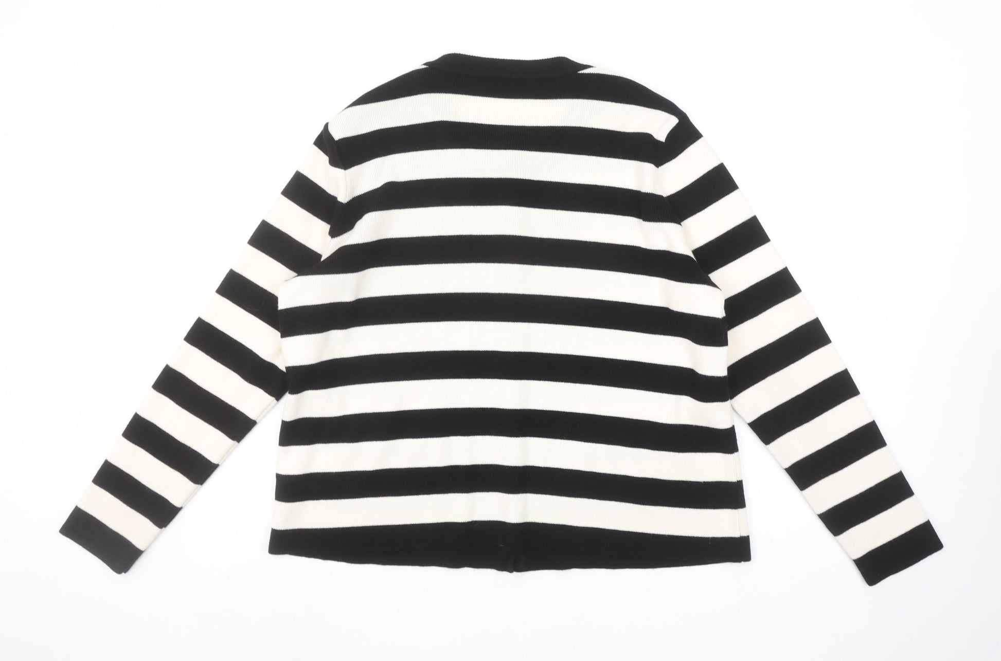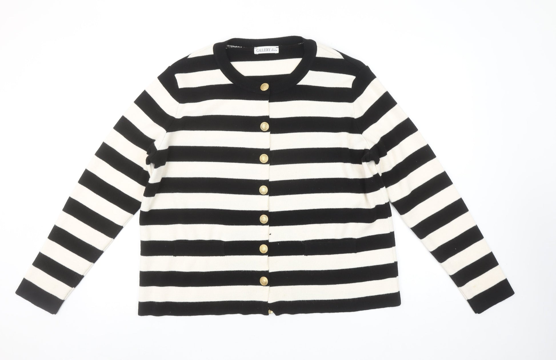 Gallery Women’s Black Ivory Striped Cardigan L Crew Neck Knit