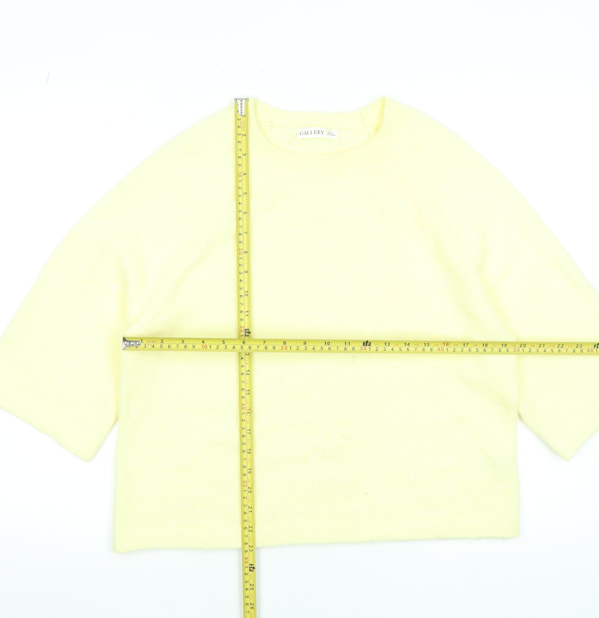 Gallery Women’s Yellow Crew Neck 3/4 Sleeve Pullover Jumper Size 10