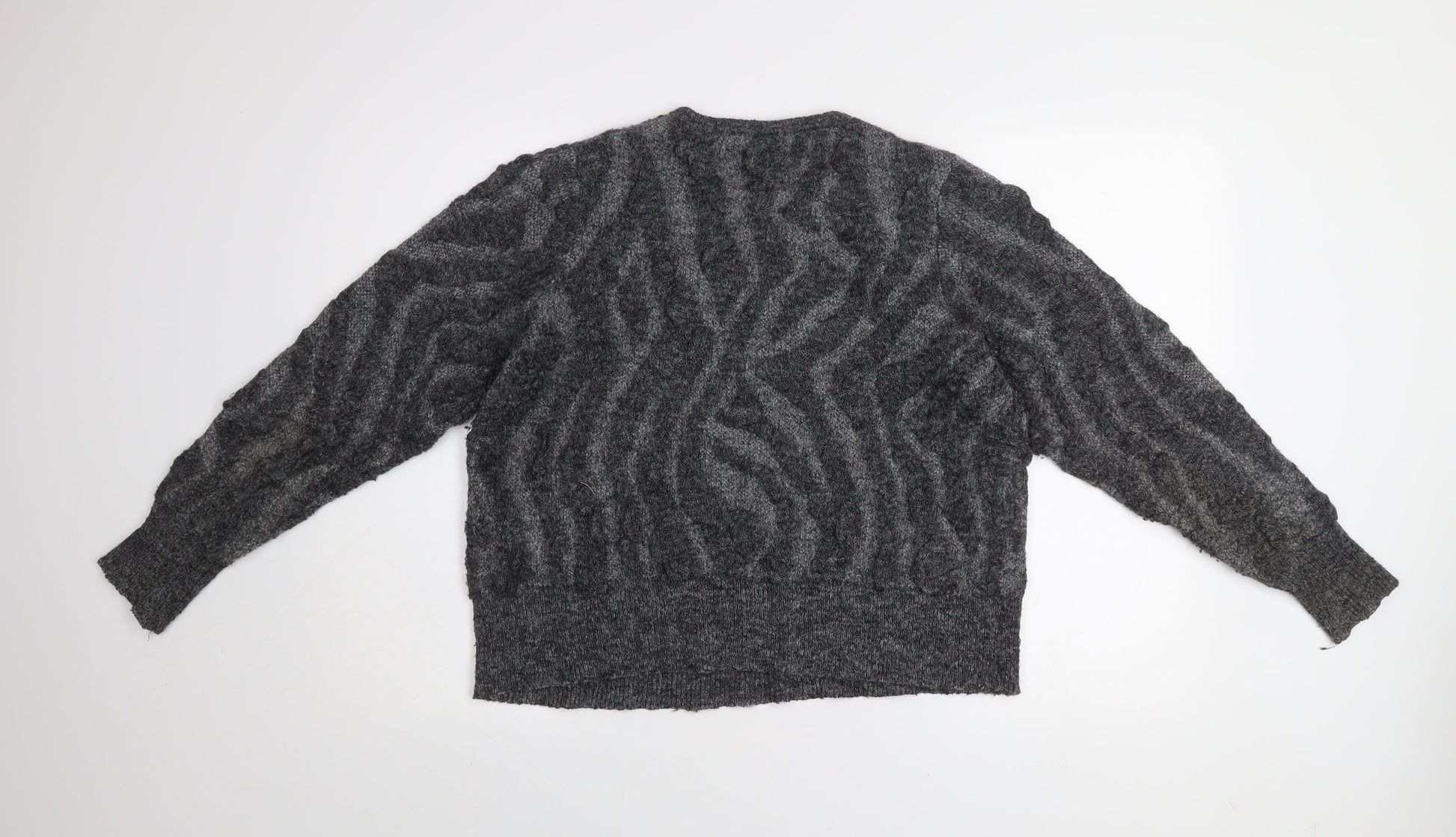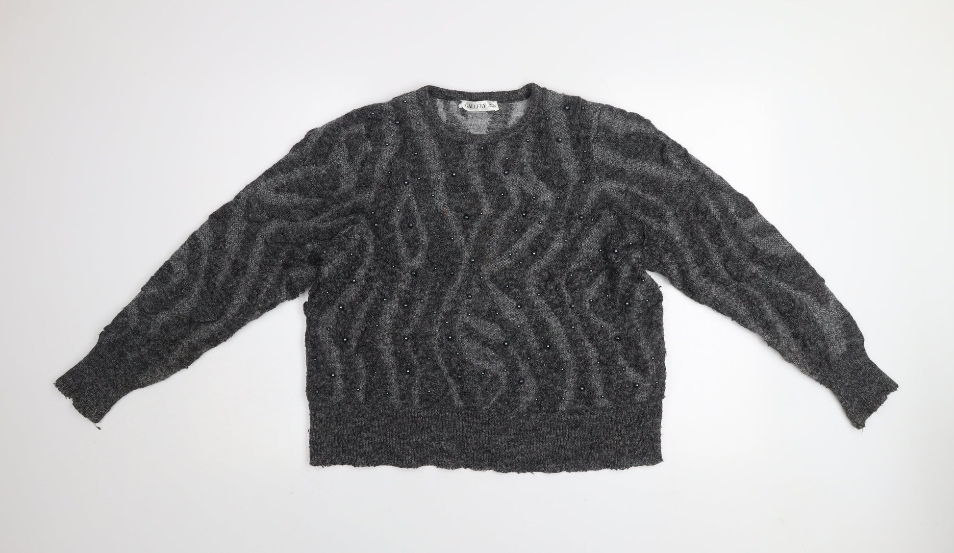 Gallery Women's Grey Beaded Animal Knit Jumper Size M