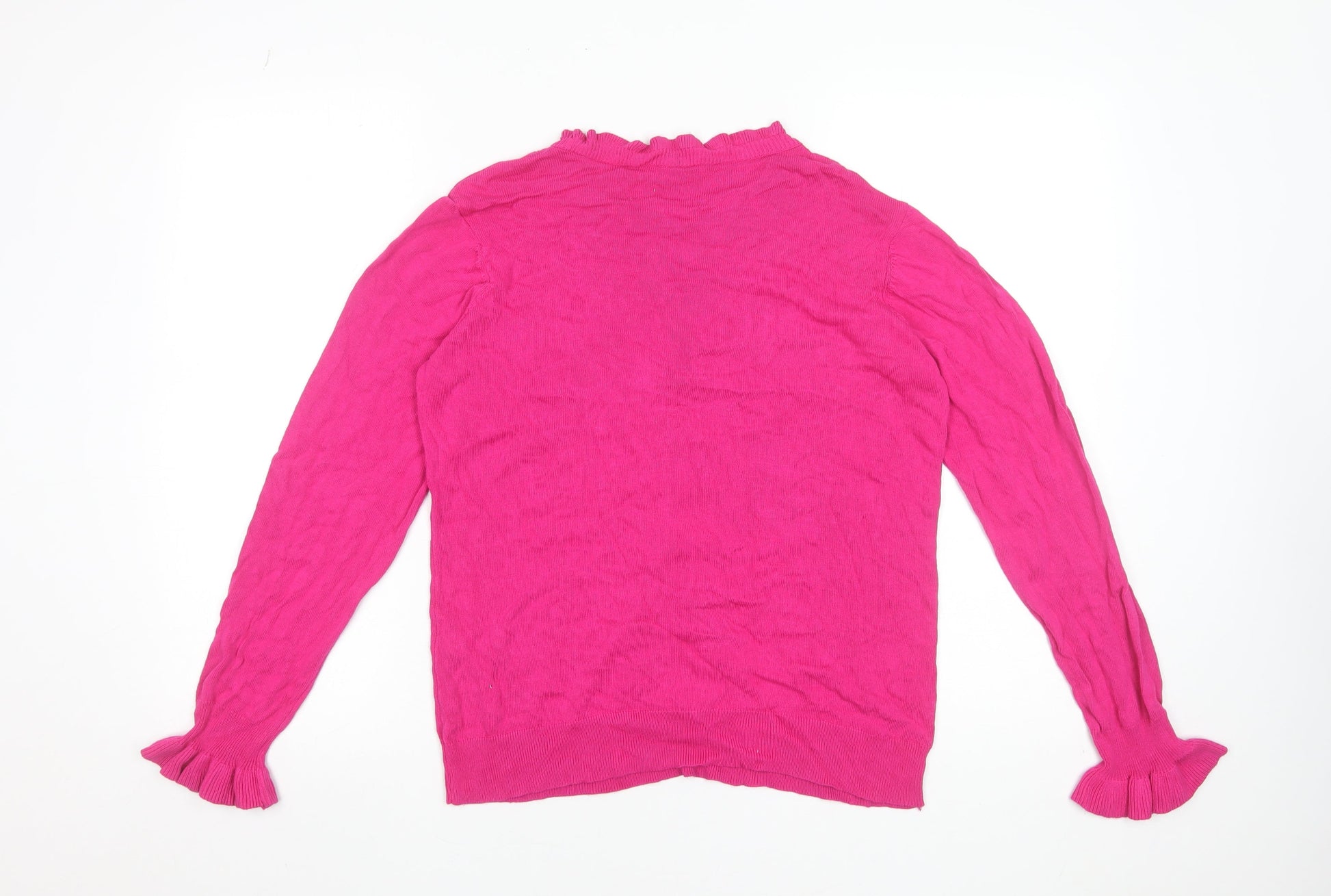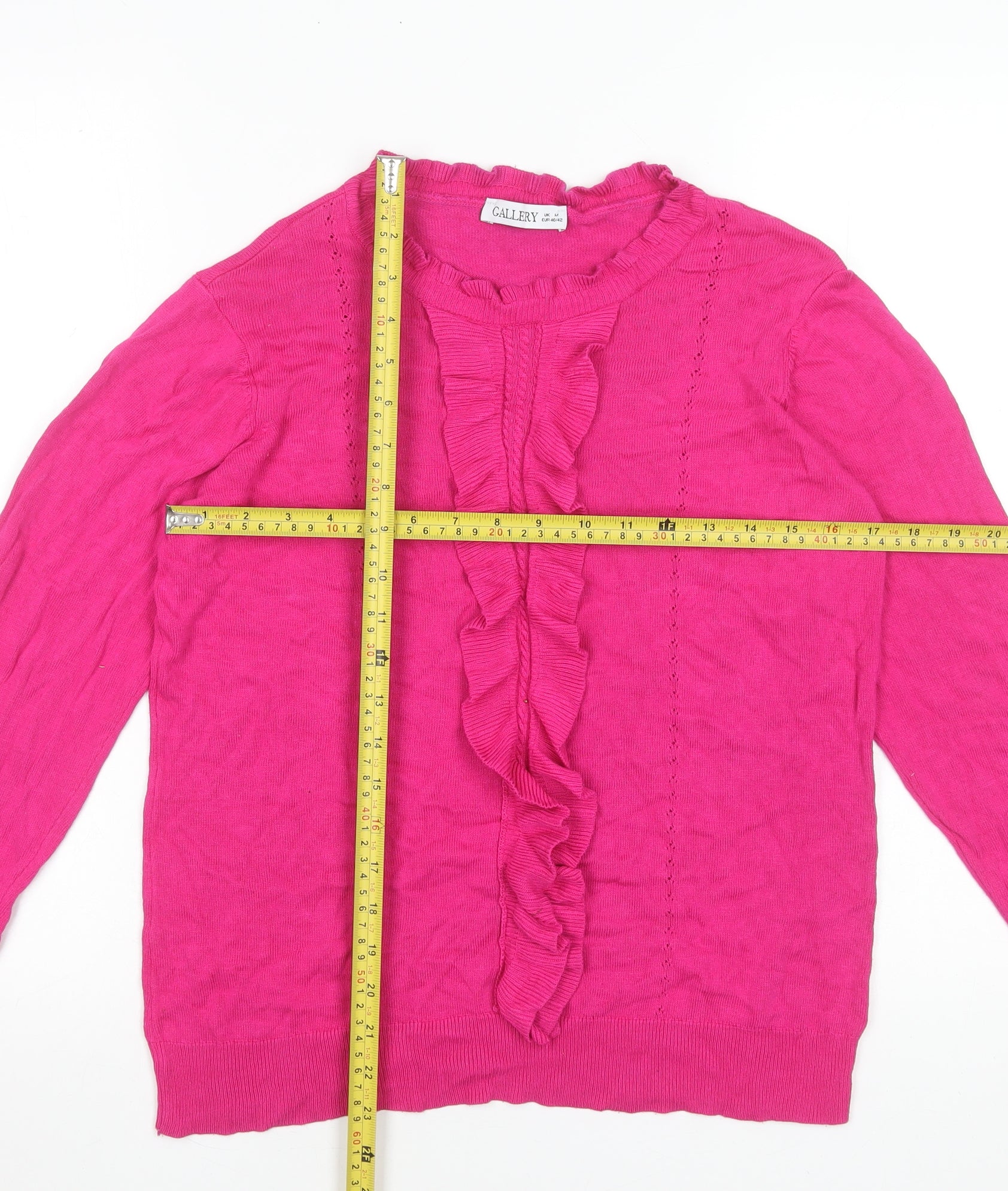 Gallery Women's Pink Ruffle Crew Neck Viscose Jumper Size 14