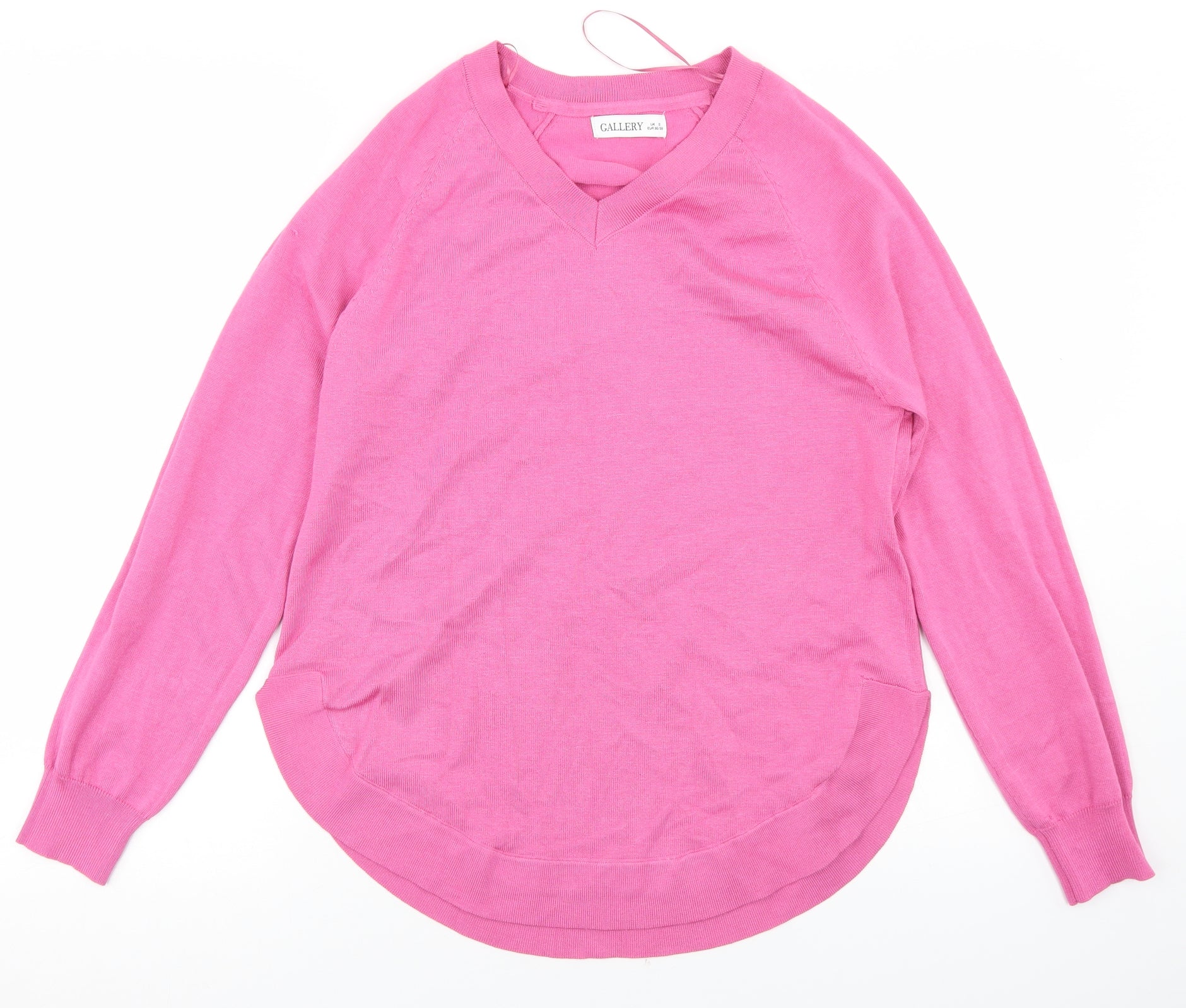 Gallery Womens Pink V-Neck Acrylic Pullover Jumper Size S