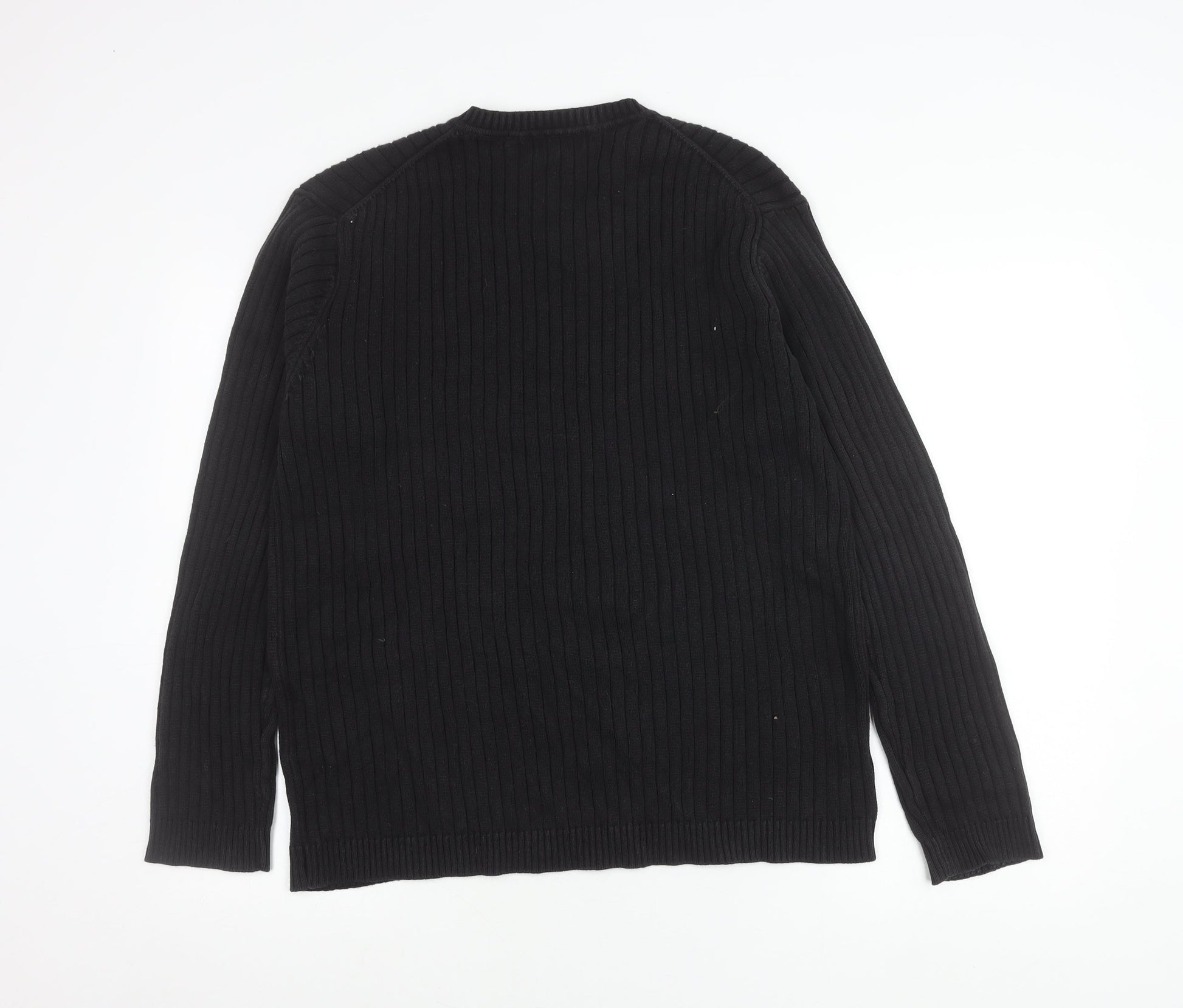Gant Men's Black Cotton V-Neck Jumper Size L Long Sleeve Knit