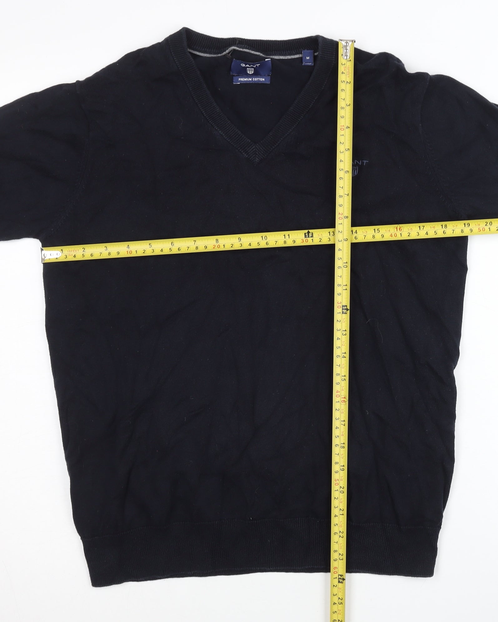 Gant Men's Black Cotton V-Neck Pullover Jumper Size M