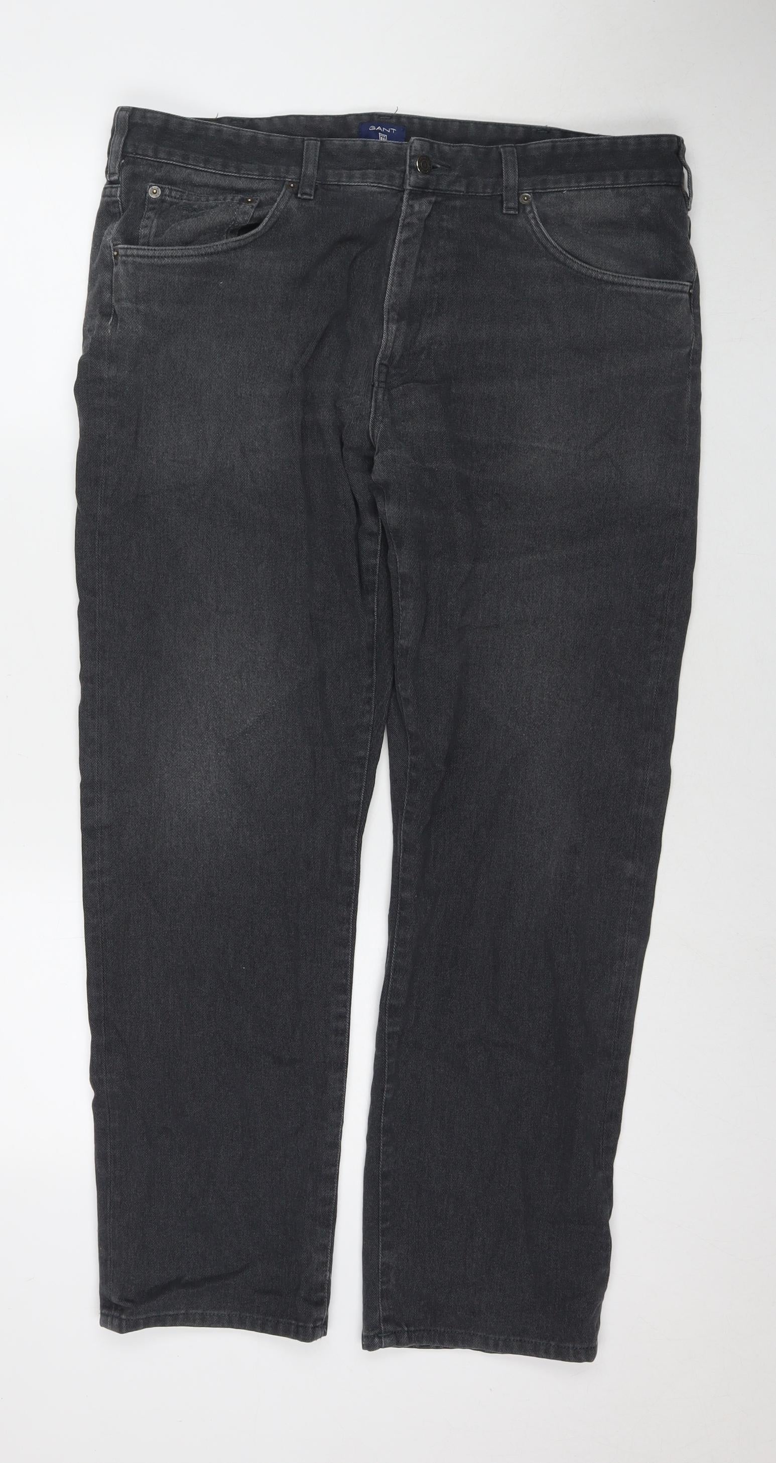 GANT Mens Grey Cotton Straight Jeans Size 36 in L30 in Regular Zip