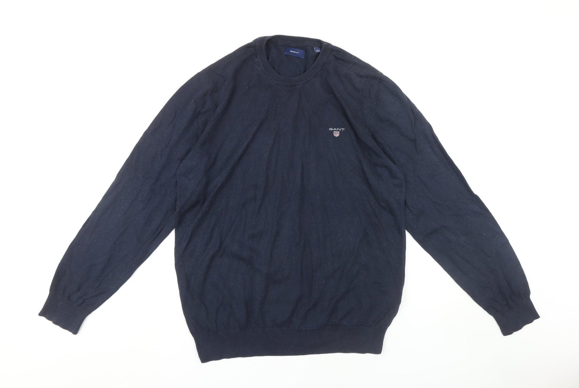GANT Men's Navy Pullover Jumper, Size L, 100% Cotton