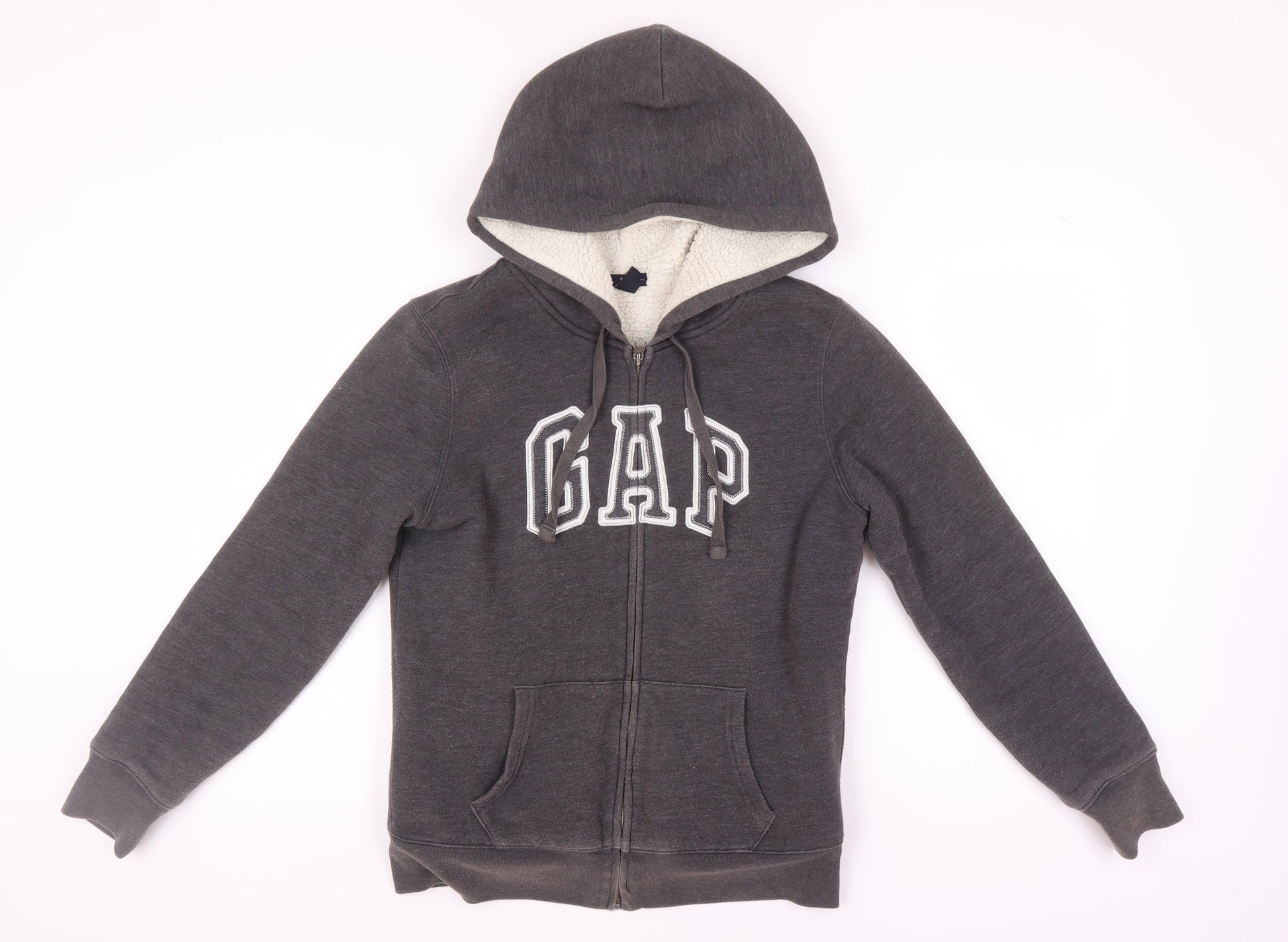 Gap Grey Unisex Hoodie, Size M, Full Zip with Logo