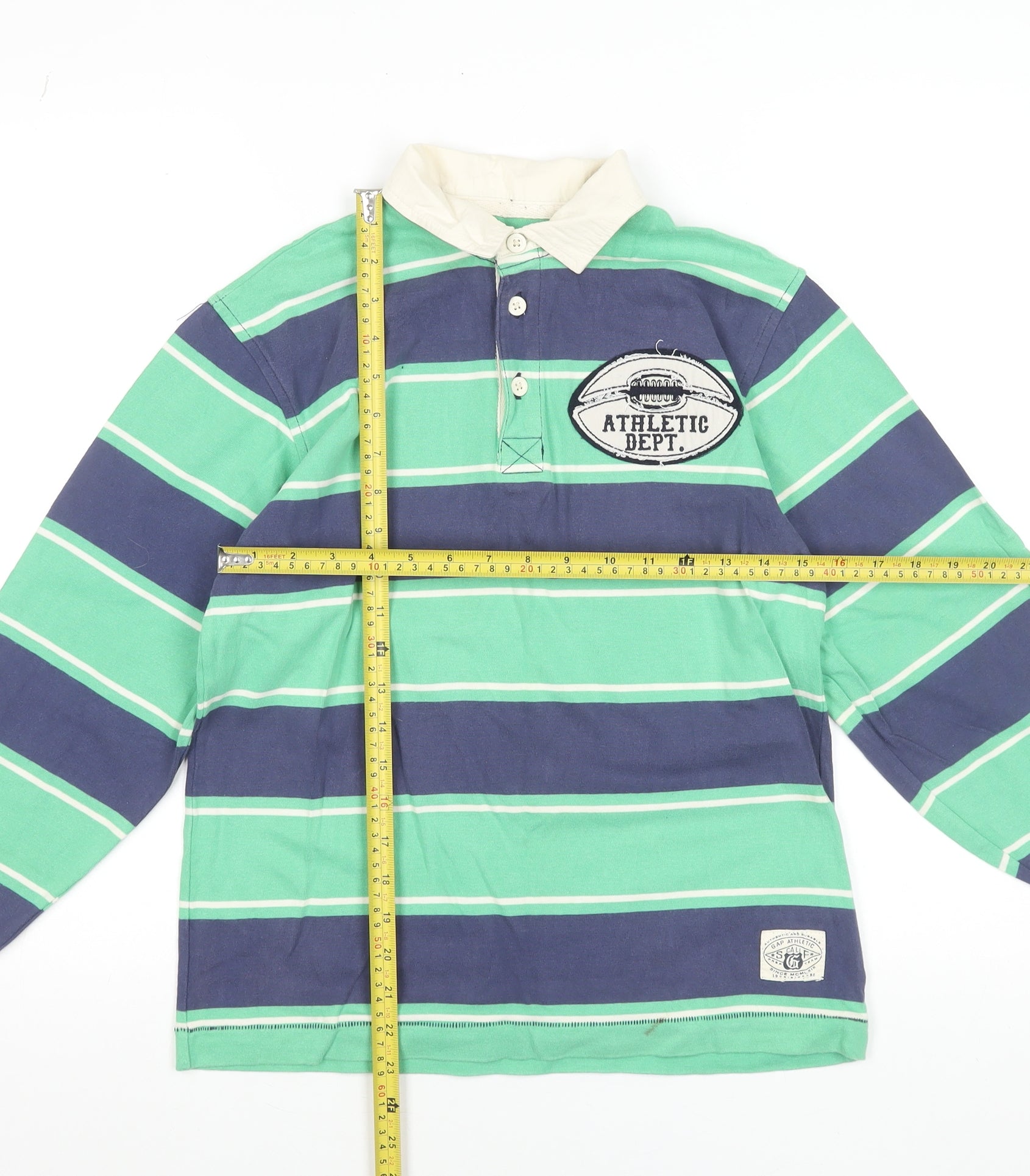 Gap Kids Boys Green Striped Rugby Polo Shirt 12-13 Years Long Sleeve Cotton