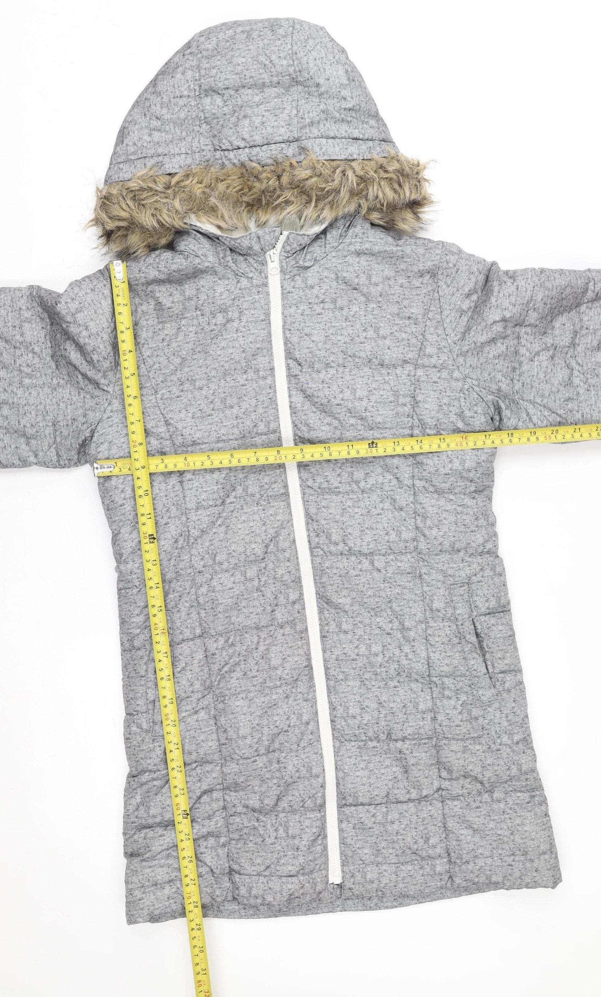 Gap Kids Grey Hooded Long Puffer Coat Teen Girls Size 14 Winter Jacket