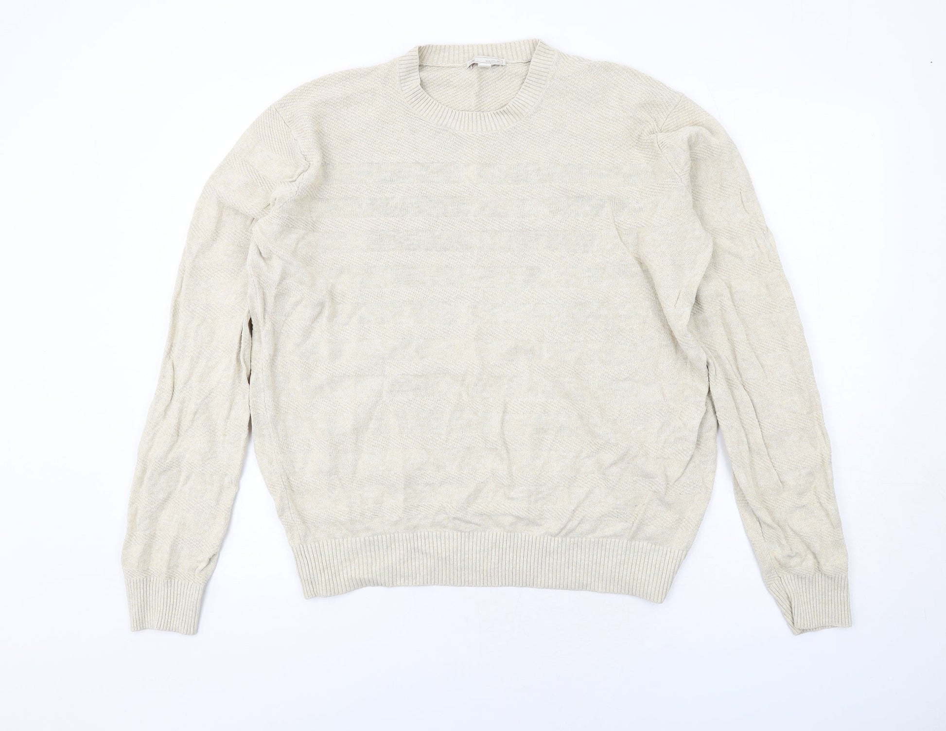 Gap Mens Beige Round Neck Striped Linen Pullover Jumper Size XL Long Sleeve