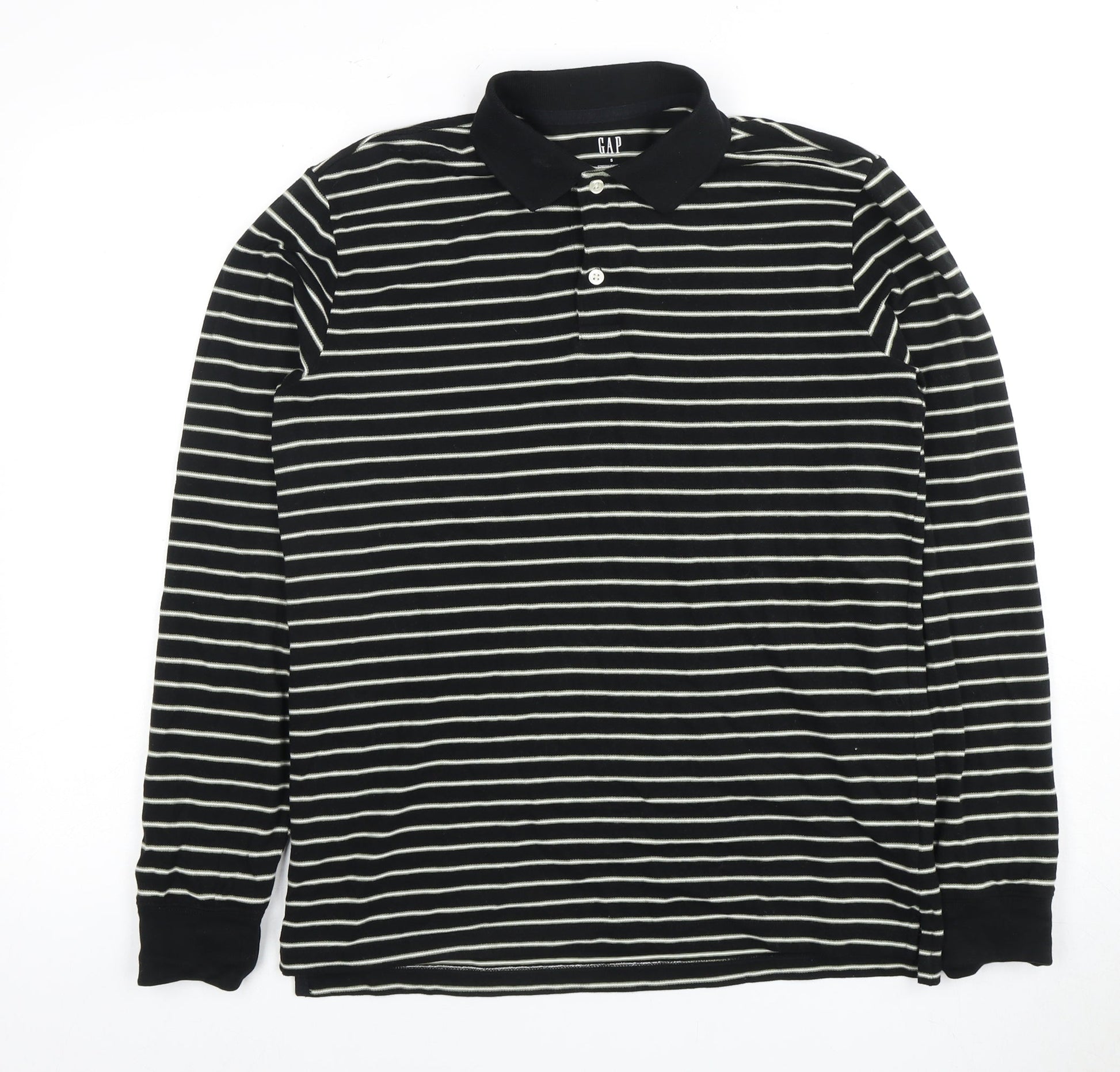 GAP Men's Black Striped Long Sleeve Polo Shirt