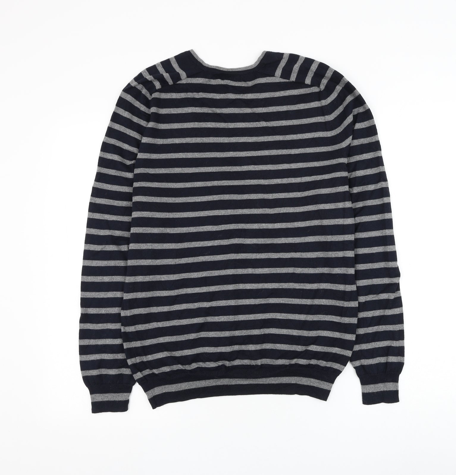 Gap Mens Blue Round Neck Striped Cotton Pullover Jumper Size S