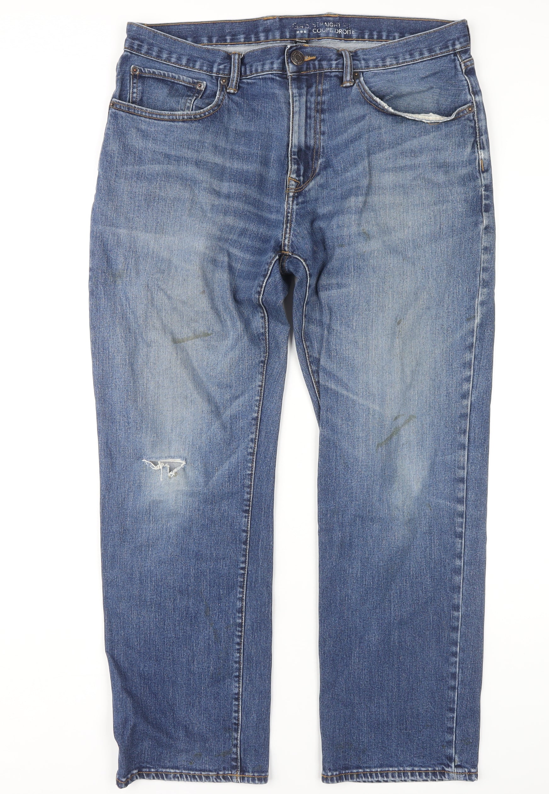 Gap Men's Blue Straight Jeans, Size 36, Distressed Style