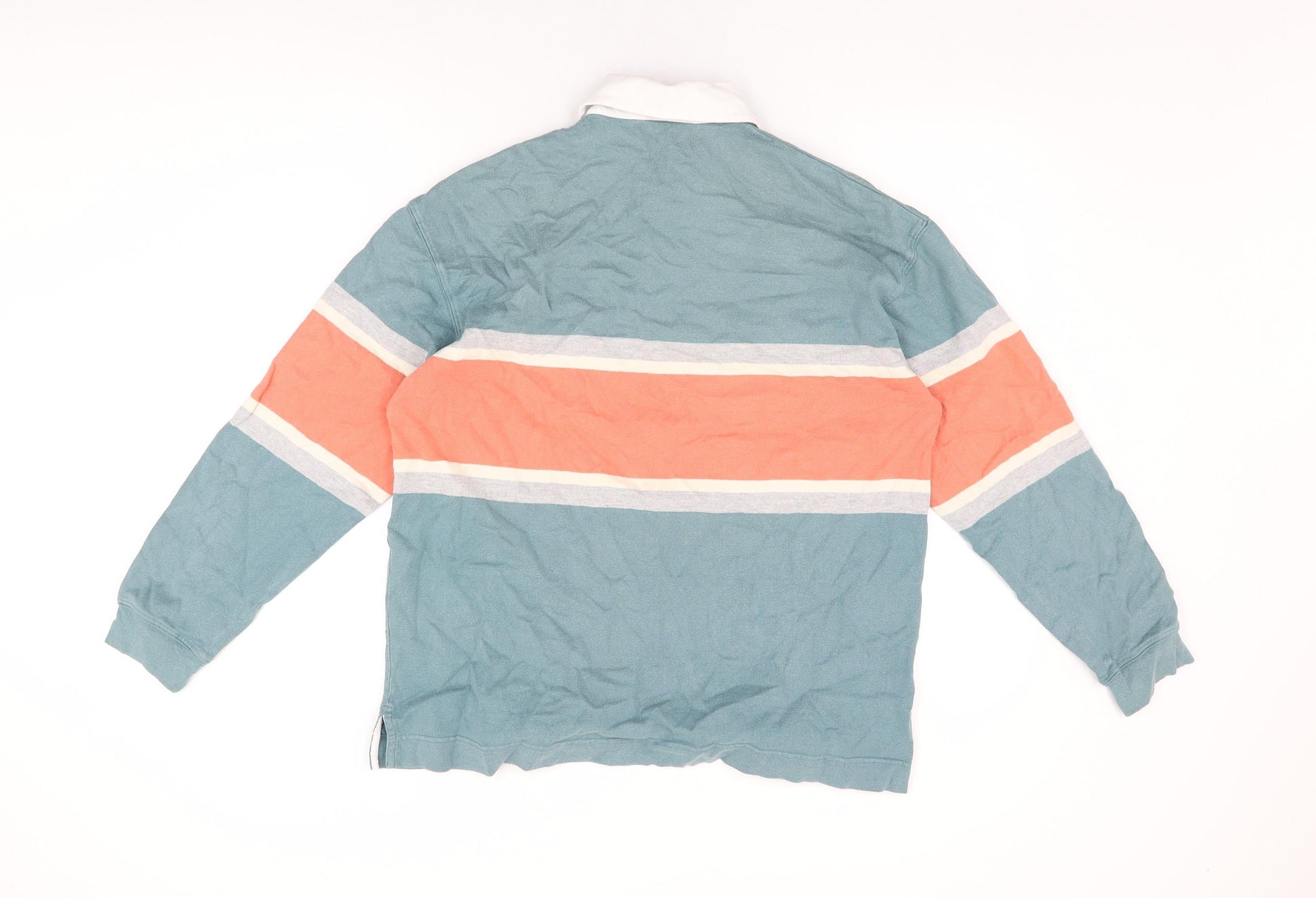 Gap Mens Blue Striped Cotton Polo Size S Collared Button