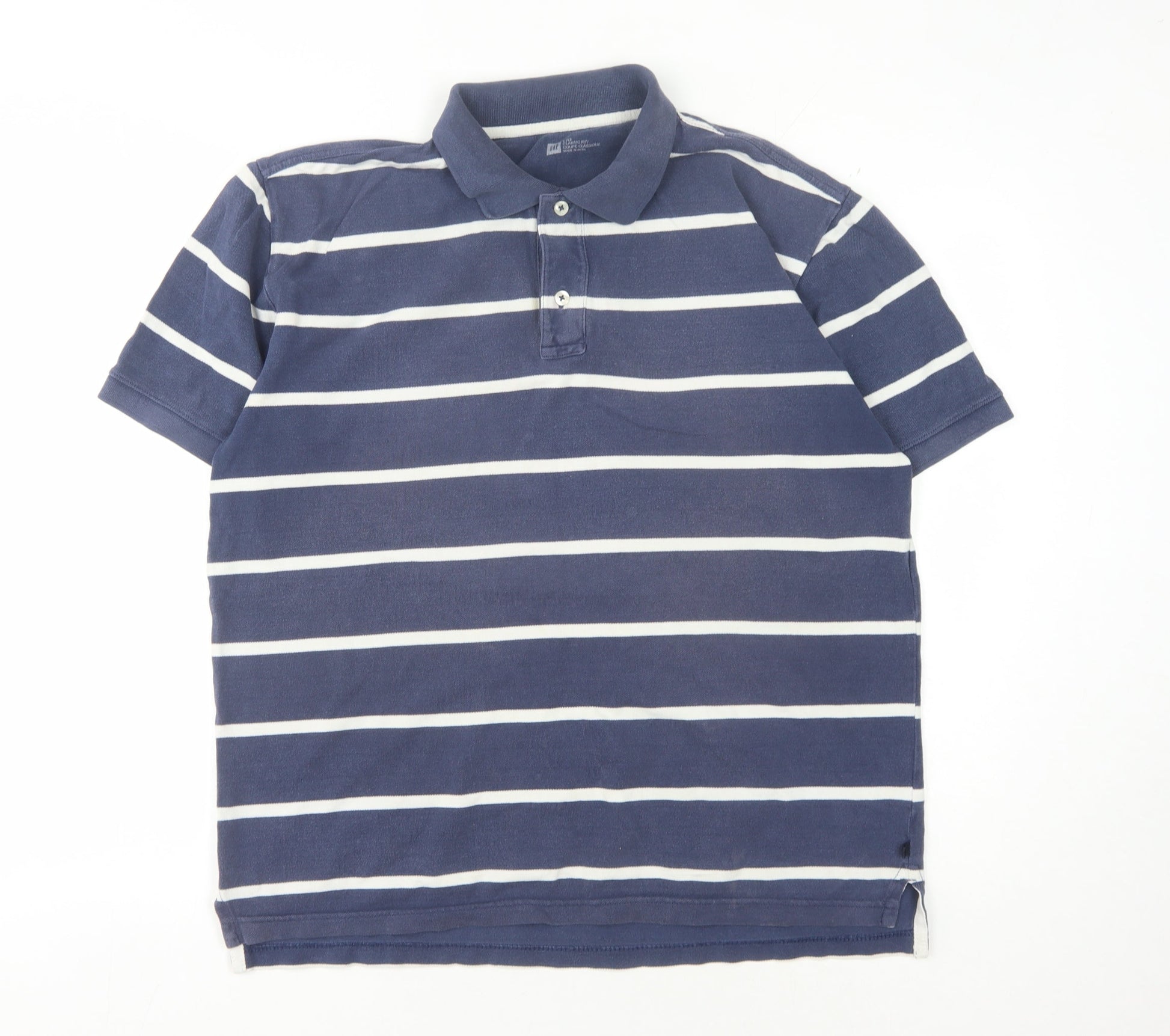 GAP Men's Blue Striped Polo Shirt, Size L, Classic Fit