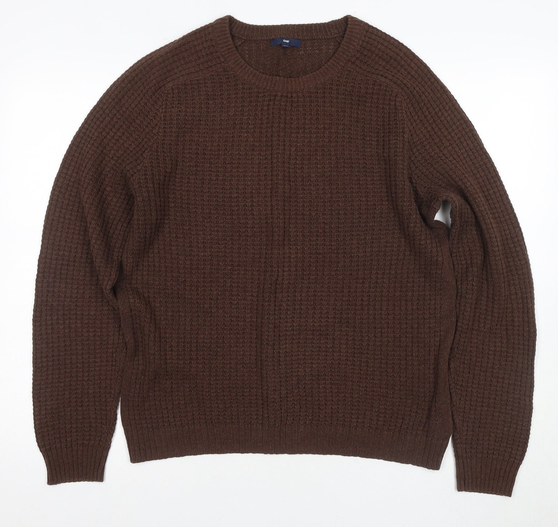 Gap Men's Brown Waffle-Knit Pullover Jumper M