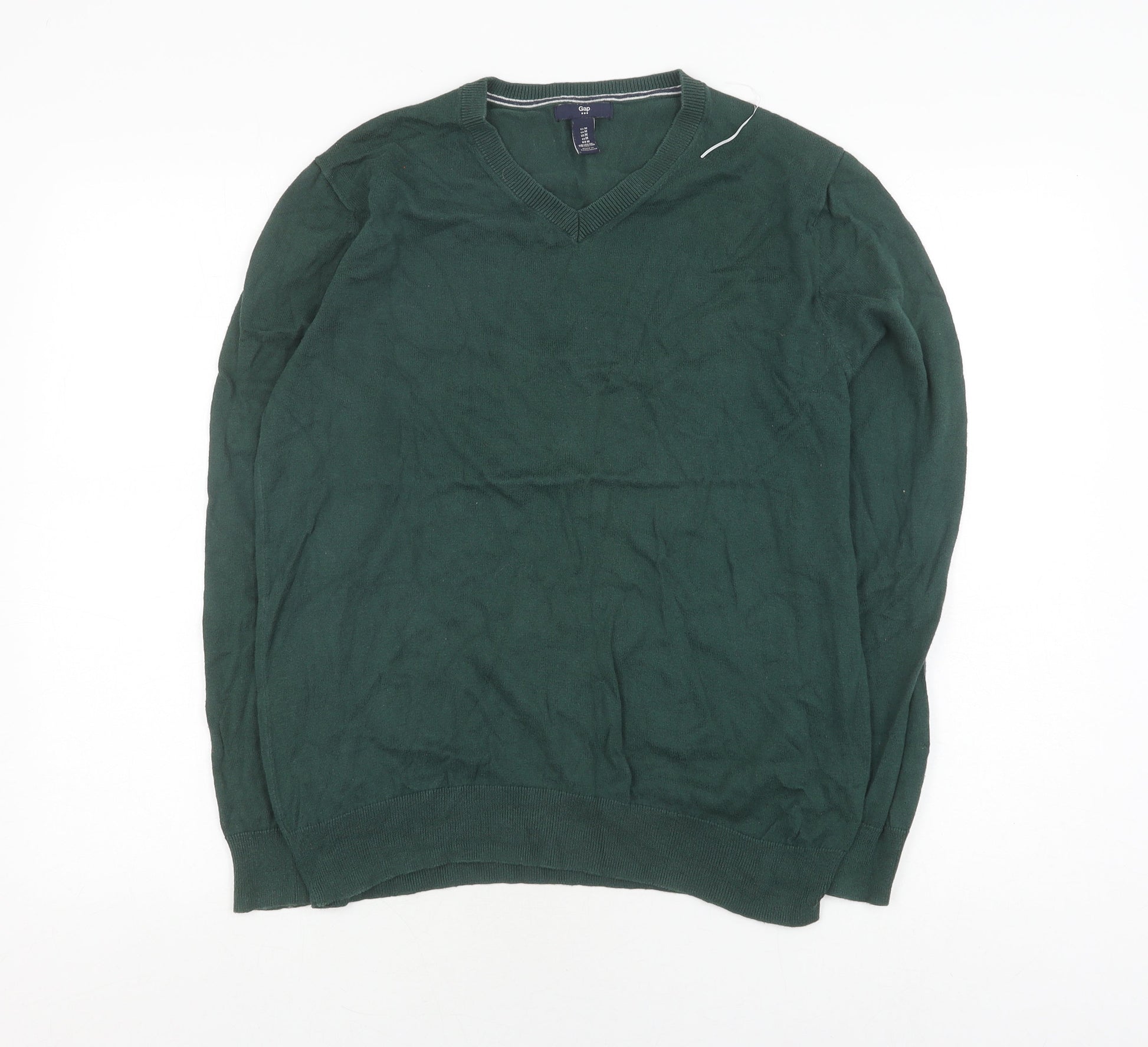 Gap Men's Green V-Neck Pullover Jumper, Size M