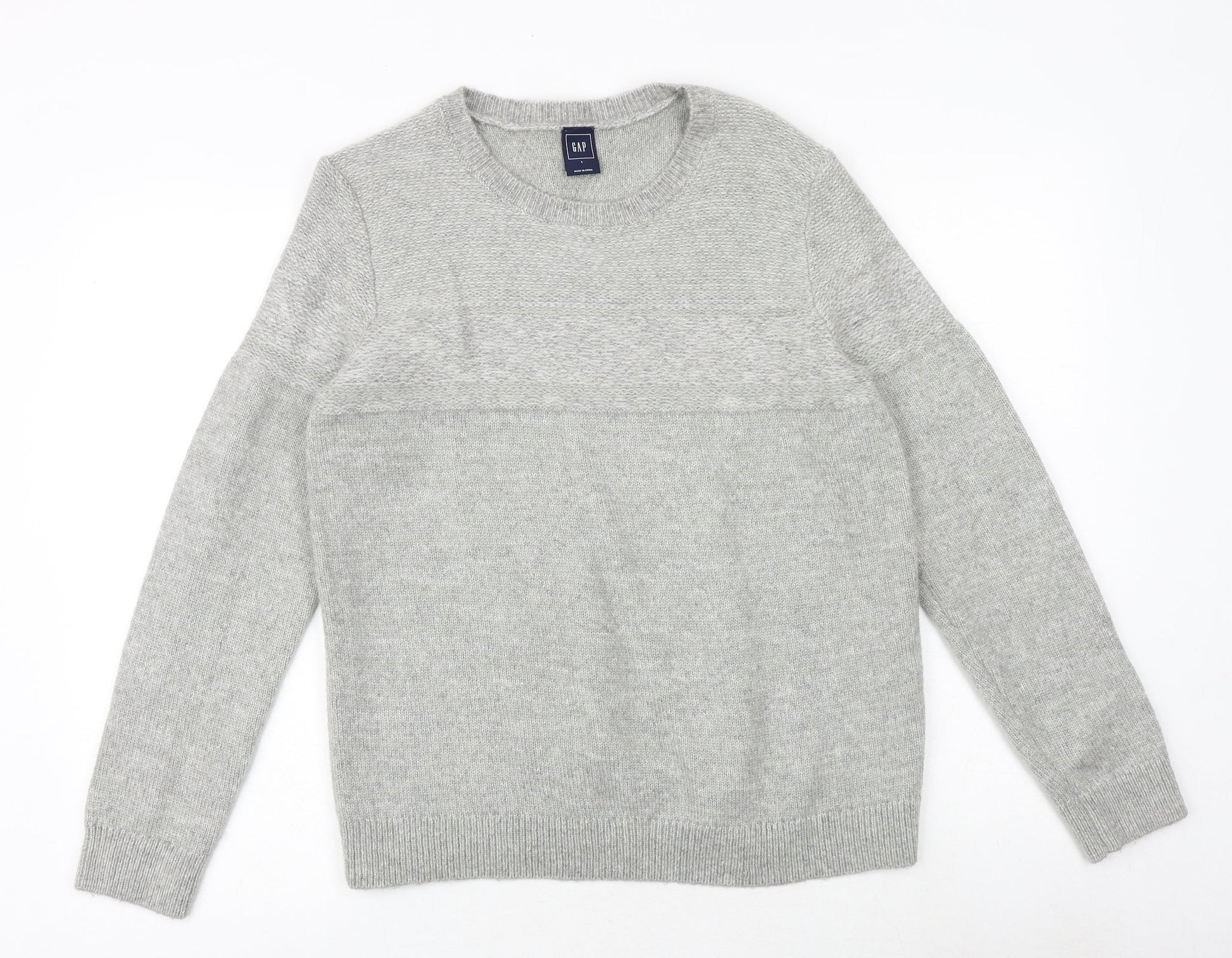 Gap Mens Grey Round Neck Acrylic Pullover Jumper Size L Long Sleeve