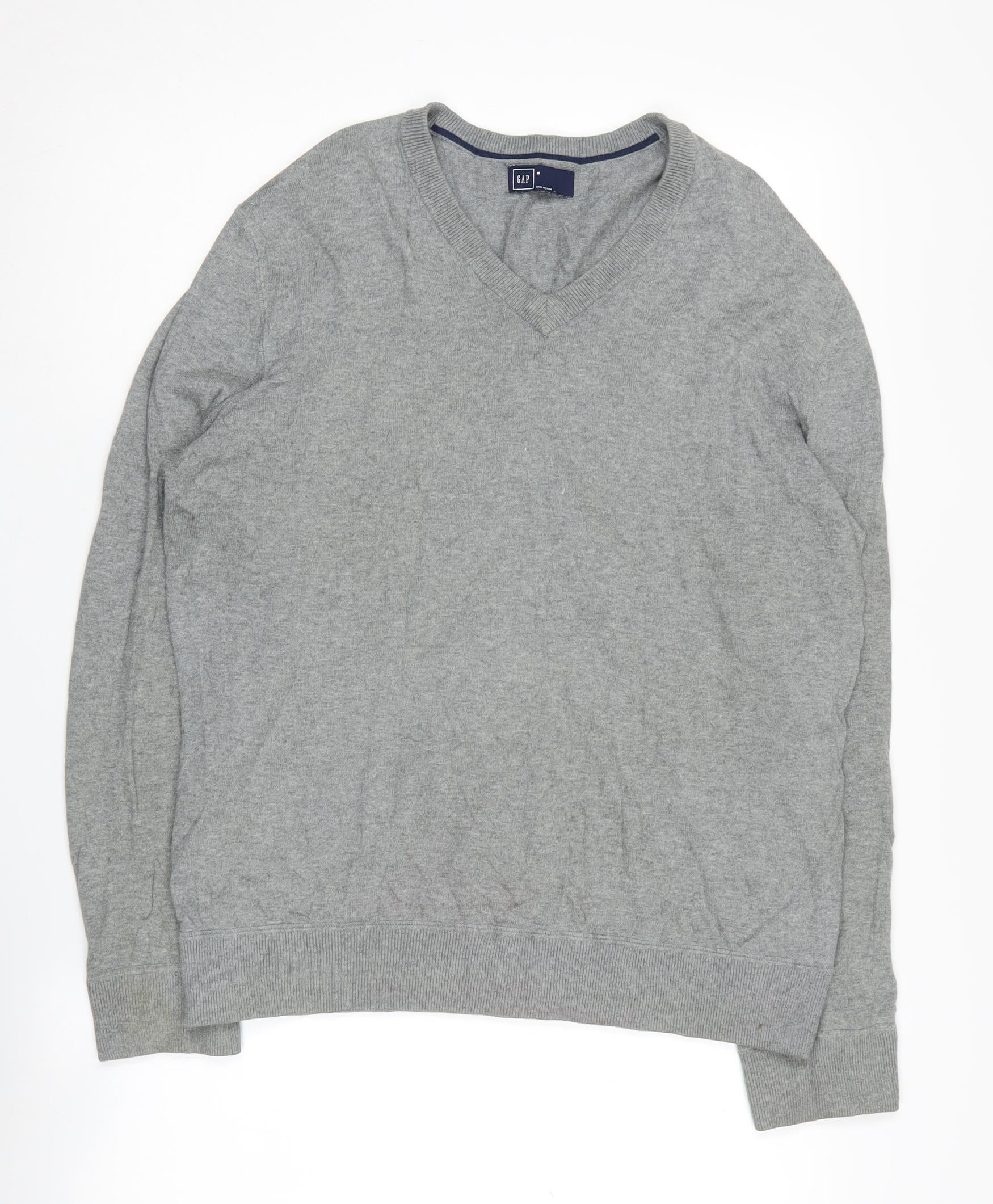 GAP Men's Grey V-Neck Cotton Pullover Jumper M