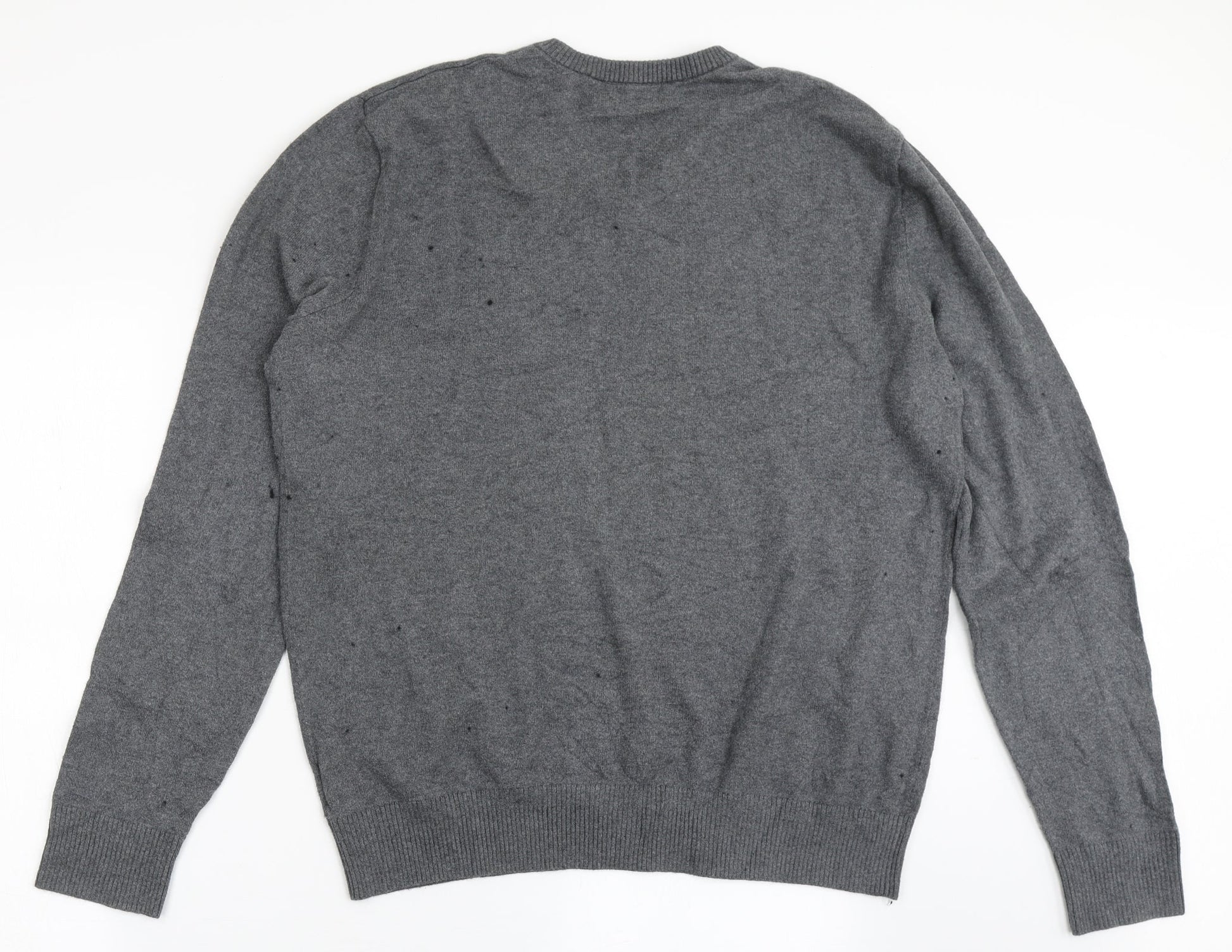 Gap Mens Grey V-Neck Cotton Pullover Jumper Size L