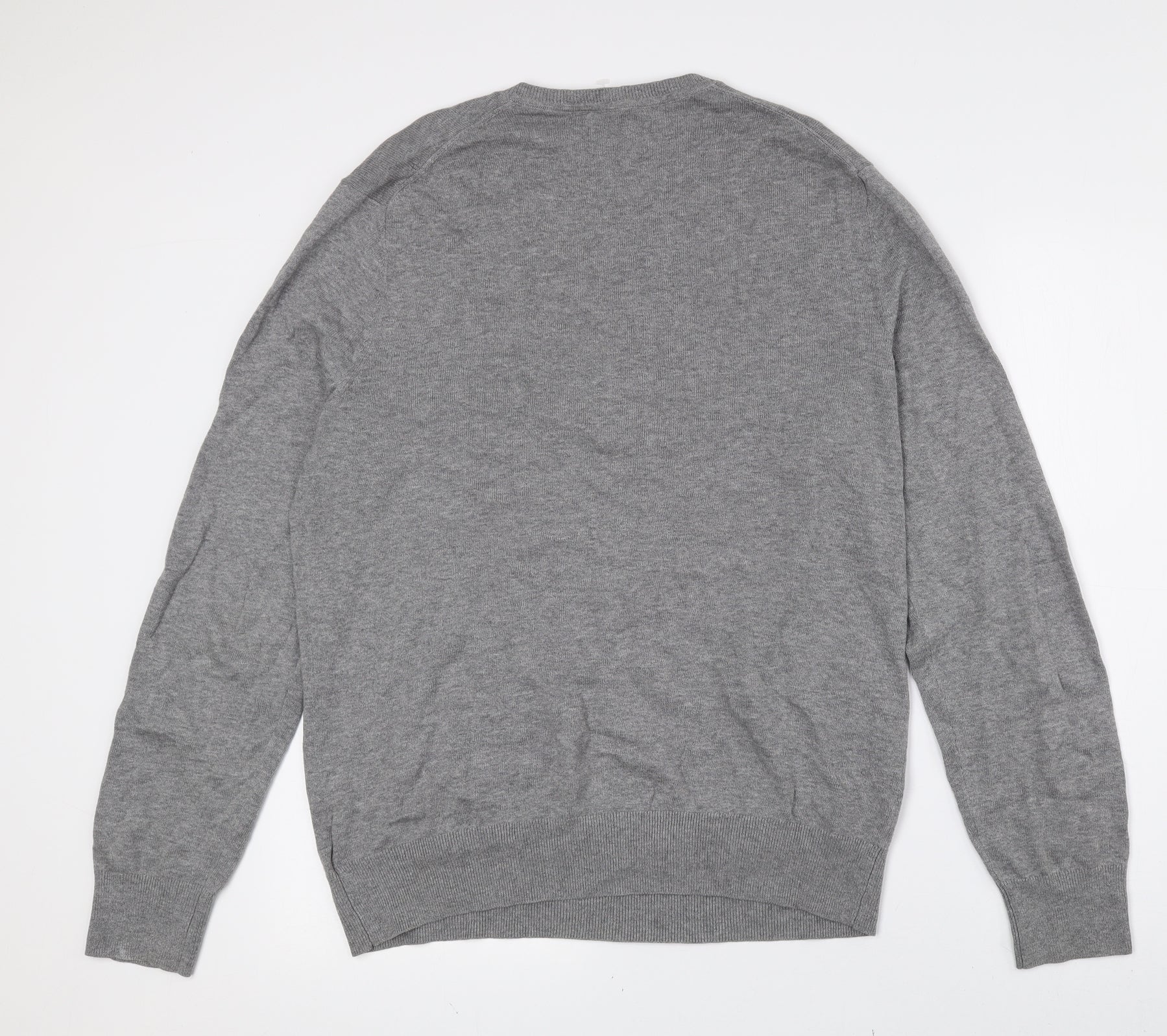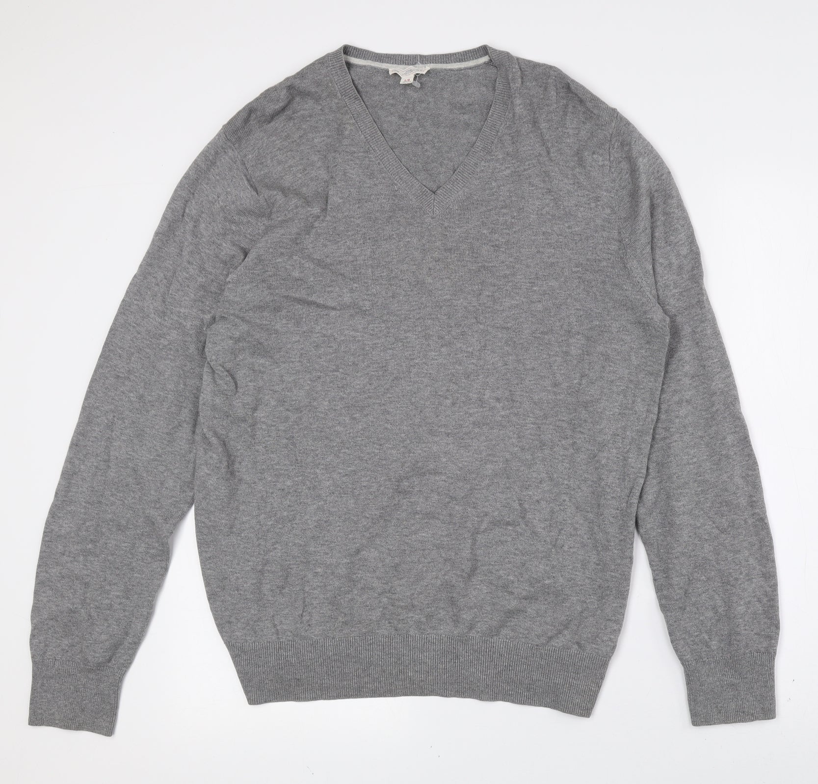Gap Mens Grey V-Neck Cotton Pullover Jumper Size L